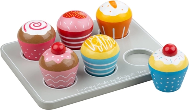 Oferiți copiilor bucuria jocului creativ cu brioșele din lemn BIGJIGS TOYS. Setul include șase piese care arată apetisant, plus o tavă, fiind mereu gata de servire. Fiecare brioșă are un decor unic, care invită la jocuri de combinare și de rol în bucătăria sau magazinul pentru copii.