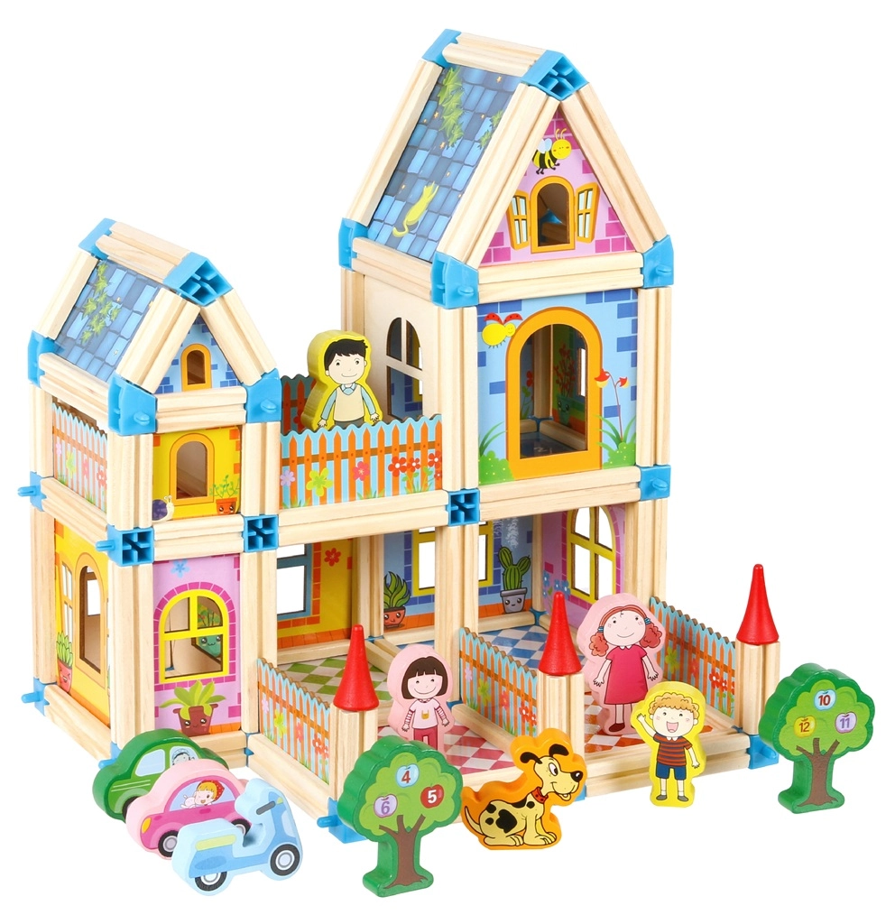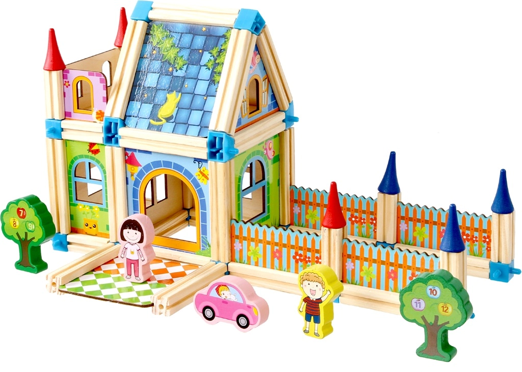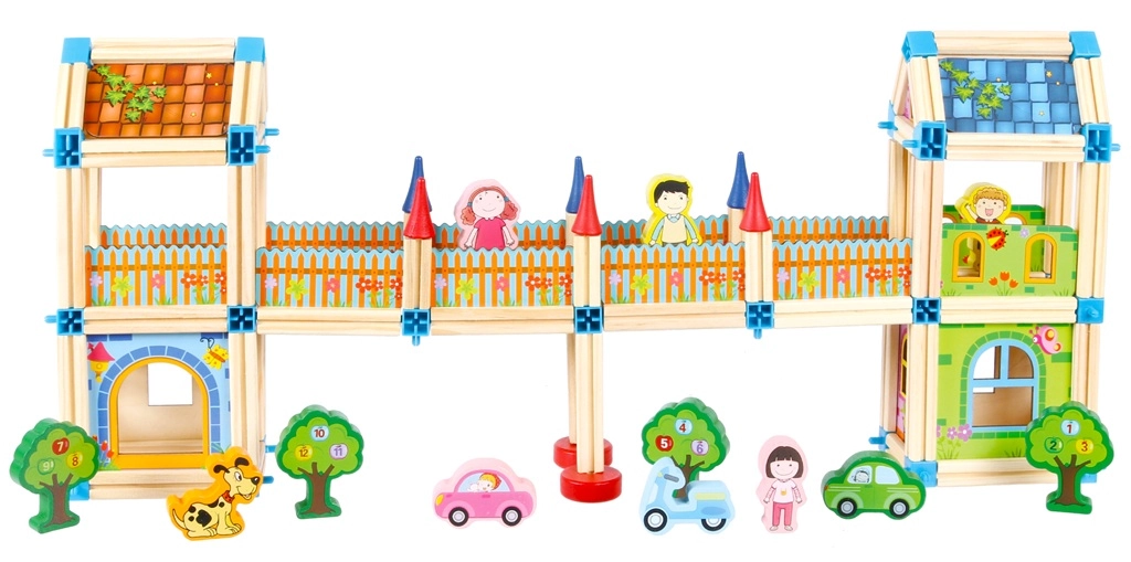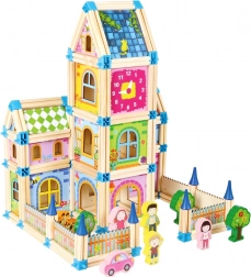 Descoperiți posibilități nelimitate de creație cu acest set de construcție, care combină piese din lemn și conectori din plastic pentru asamblare ușoară și stabilă. Setul de 268 de piese le permite copiilor să creeze case, castele și palate, dezvoltând în mod natural motricitatea fină, creativitatea și imaginația. Datorită designului atent lucrat, culorilor vii și broșurii cu idei incluse, construcția devine intuitivă, distractivă și împlinitoare pentru copiii de la 3 ani.