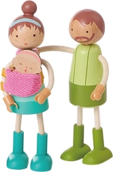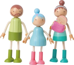 Mamă, tată, copil și bebeluș cu membre flexibile pentru poziționare ușoară și scenete realiste care stimulează imaginația și comunicarea.