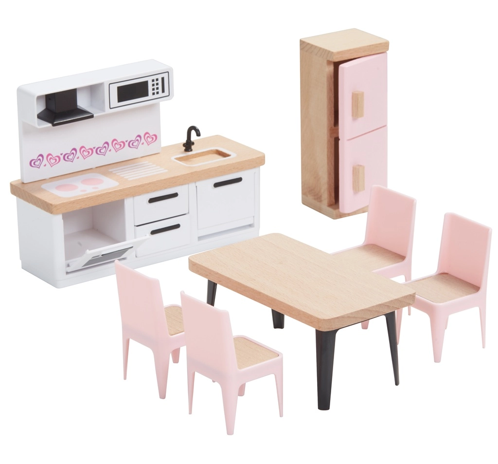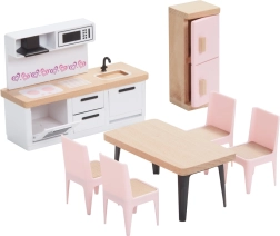 Datorită lemnului de calitate, finisării netede și detaliilor bine gândite (uși care se deschid, sertare, accesorii), acest set este o alegere excelentă pentru joacă de durată și în siguranță. Sprijină dezvoltarea imaginației, povestirea și coordonarea mână-ochi.