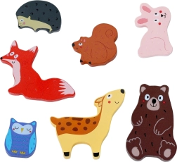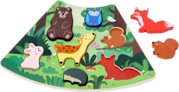 Acest puzzle din lemn de calitate cu animale de pădure îi va încânta pe micii exploratori de la 18 luni. Suportul robust și piesele groase în formă de vulpe, urs, cerb, bufniță, iepure, arici și veveriță sunt concepute pentru a fi ușor de apucat de mâinile mici. Ilustrațiile colorate susțin recunoașterea formelor și a animalelor și conduc natural la primele învățări prin joc.