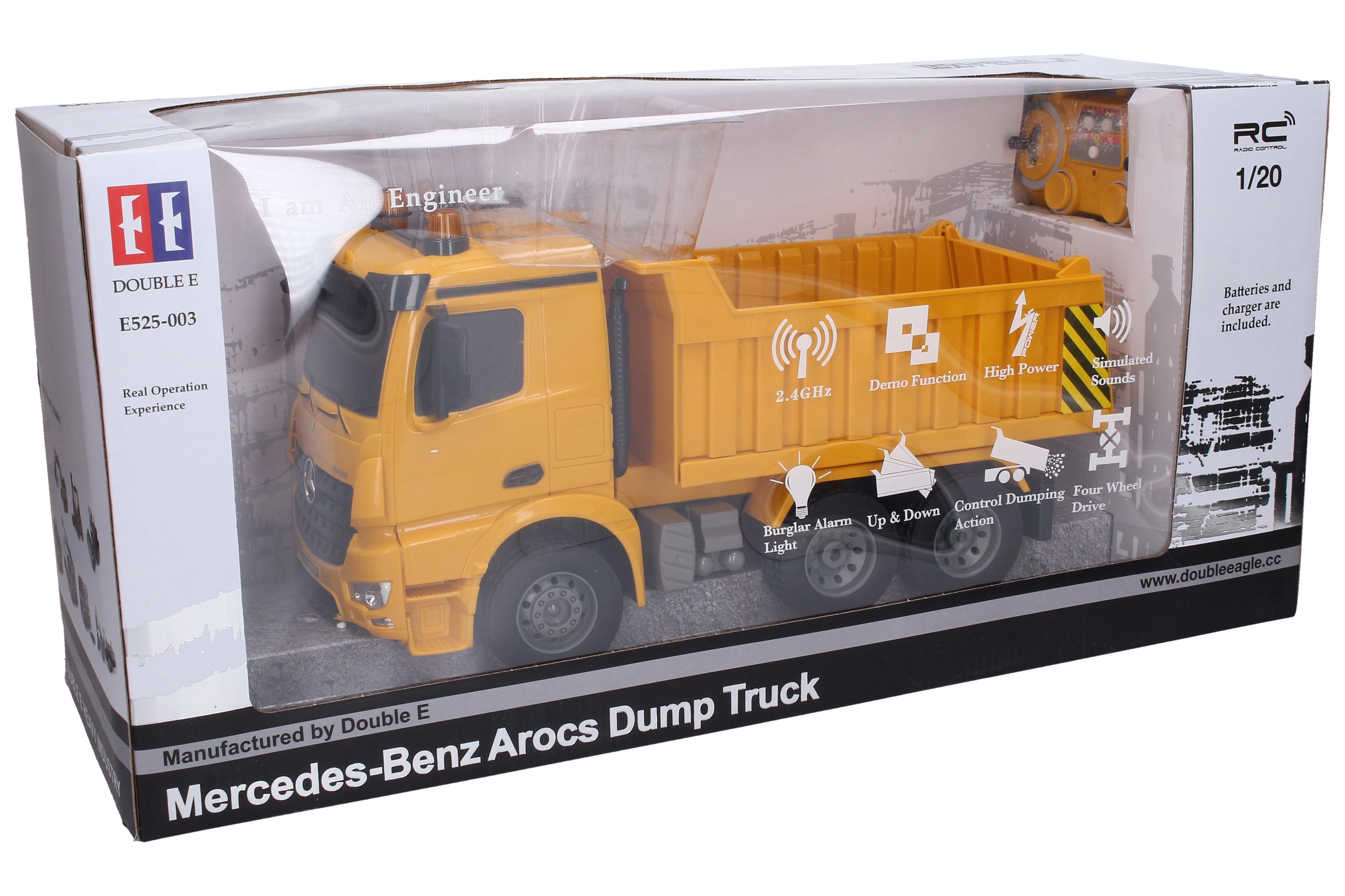 Basculanta RC MERCEDES este o alegere excelentă atât pentru micii constructori, cât și pentru colecționarii pasionați. Datorită frecvenței de 2,4 GHz, controlul este stabil și fără interferențe, iar efectele de lumină și sunet sporesc realismul experienței de condus. Benă funcțională permite înclinarea și bascularea încărcăturii direct din telecomandă.