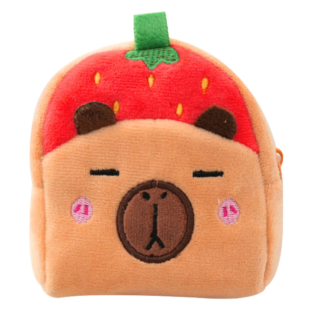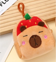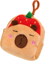 Portofel de pluș adorabil în forma unei capibara cu căpșună roșie, ideal pentru copii și iubitorii de accesorii kawaii. Este ușor, moale și plăcut la atingere, are închidere cu fermoar sigură și un clips practic din plastic pentru prindere de rucsac sau chei. Dimensiunile compacte 9,5 × 8 cm sunt perfecte pentru monede, bancnote, chei și micile comori.