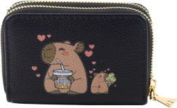 Acest portofel compact, în elegantul negru, îmbină designul drăguț cu capibara și o organizare inteligentă. Două secțiuni separate cu fermoar și compartimentarea internă tip acordeon oferă o privire rapidă asupra conținutului și ușurează sortarea cardurilor de plată, a numerarului și a obiectelor mărunte.