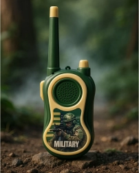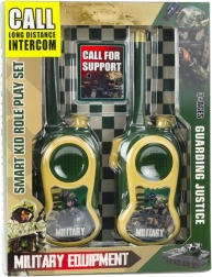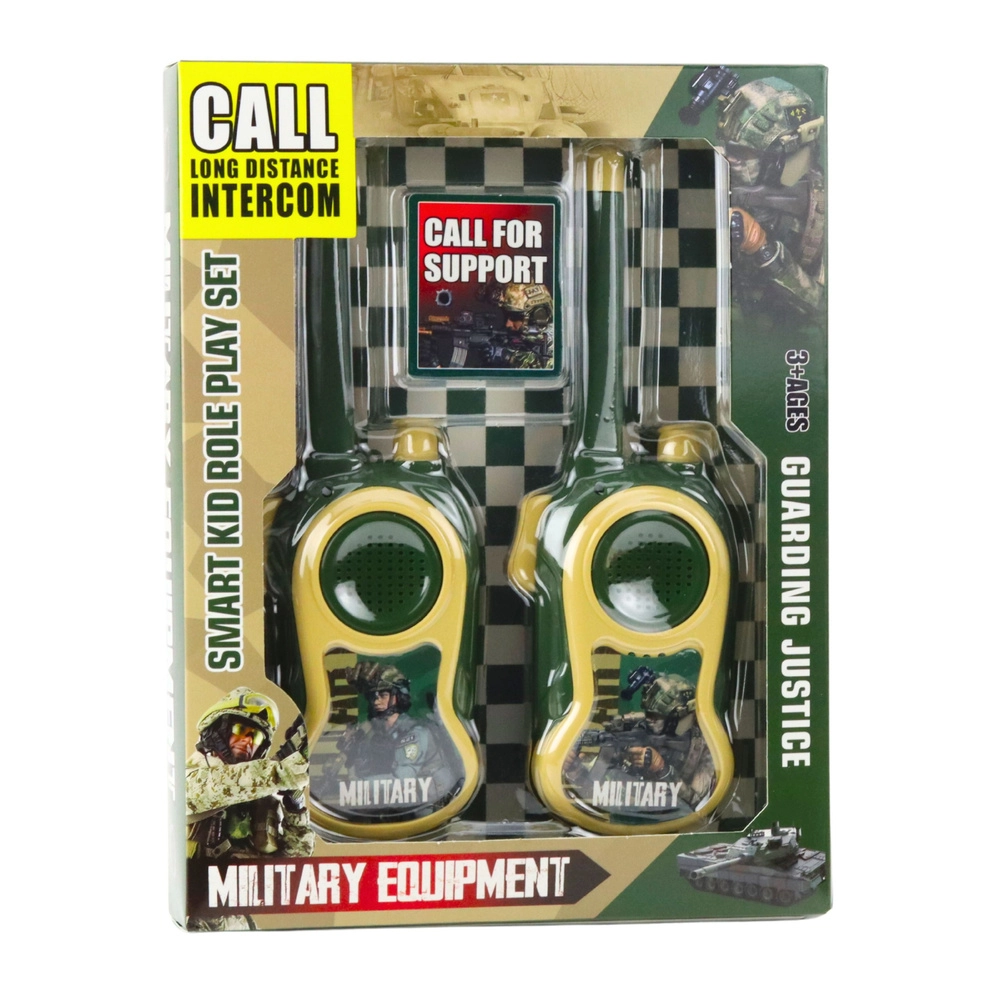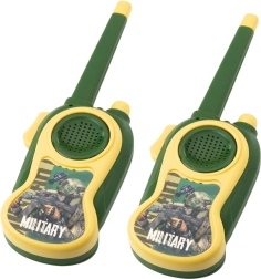 Set distractiv de două stații de emisie-recepție pentru copii în stil military, pentru joacă atât în casă, cât și afară. Operare simplă cu butonul PTT, rază de până la 300 m în condiții favorabile și construcție ușoară și rezistentă, perfect adaptată mâinii copilului. Ideal pentru comunicare în echipă, misiuni pline de aventură și dezvoltarea imaginației.