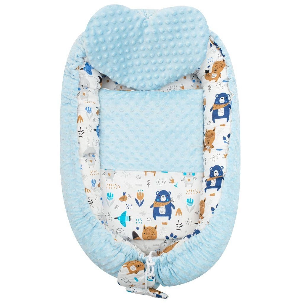 Oferă bebelușului un mediu sigur și confortabil – cuibușorul de lux New Baby cu pernuță și plăpumioară din Minky moale și bumbac 100%. Este reversibil, are mărime ajustabilă cu ajutorul unui șnur și oferă material fin, plăcut la atingere cu bobițe stimulative Minky. Potrivit pentru pătuț, cărucior și canapea.