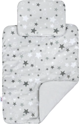 Pachetul include plăpumioară și pernuță în același design. Plăpumioara poate fi folosită și separat în cărucior sau în pătuțul copilului.