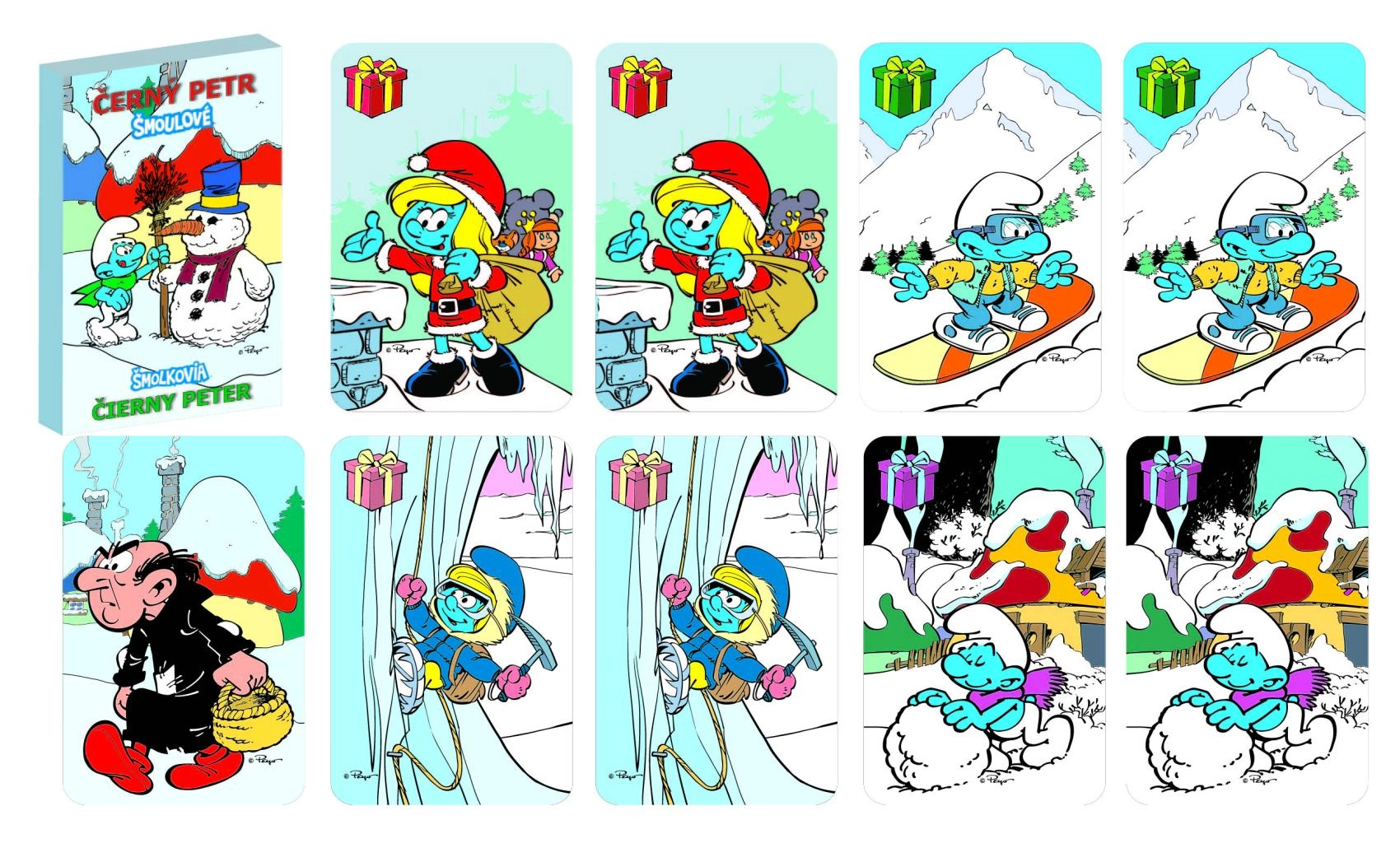Jocul tradițional de cărți Negru Petru, cu motiv ștrumf de iarnă, îi va încânta atât pe copii, cât și pe adulți. Jucătorii caută perechi identice în timp ce încearcă să evite carta Negrului Petru. Regulile simple, rundele rapide și ilustrațiile vesele cu ȘTRUMFII fac din acest joc o alegere ideală pentru serile în familie și pentru călătorii.
