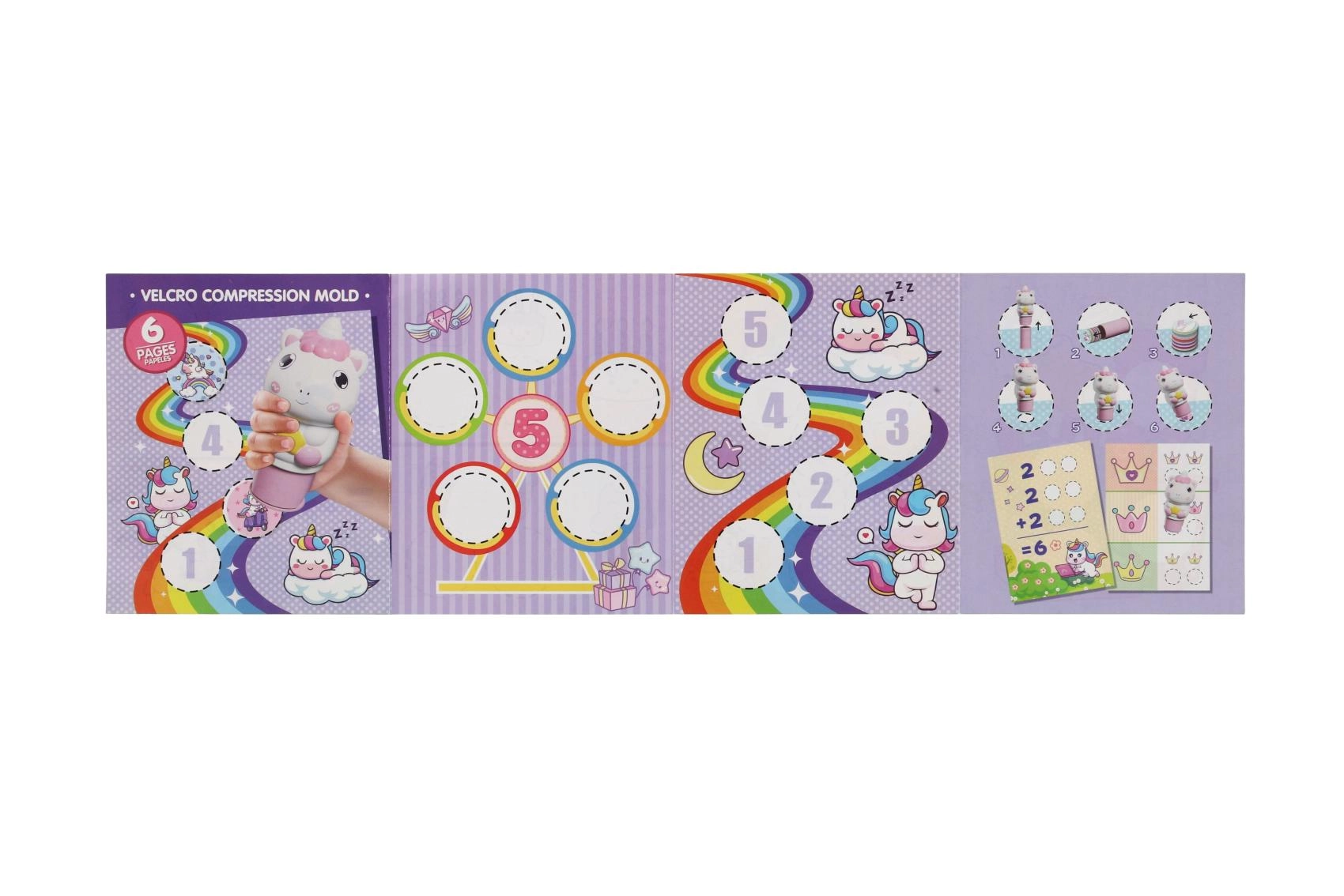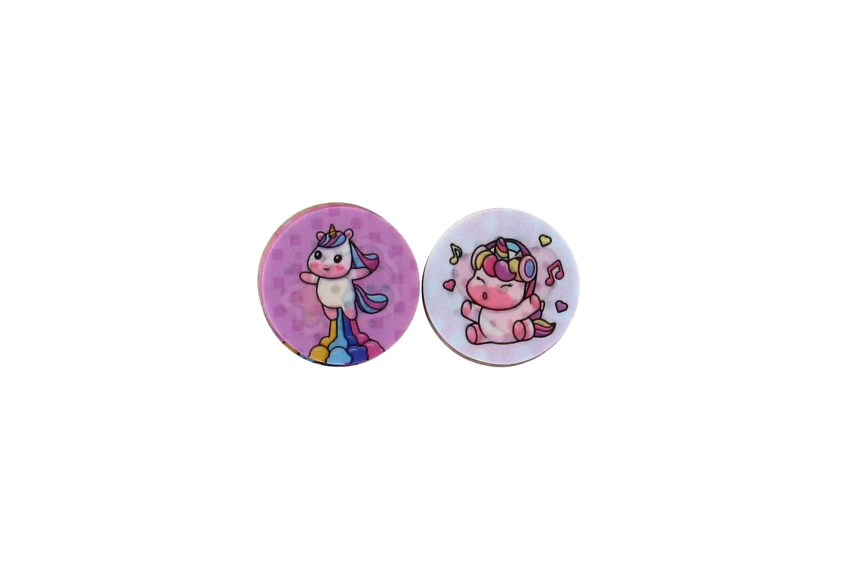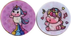 Setul include discuri rotunde cu diferite imagini cu unicorni, pe care le schimbi uşor pentru a crea de fiecare dată o nouă amprentă.