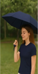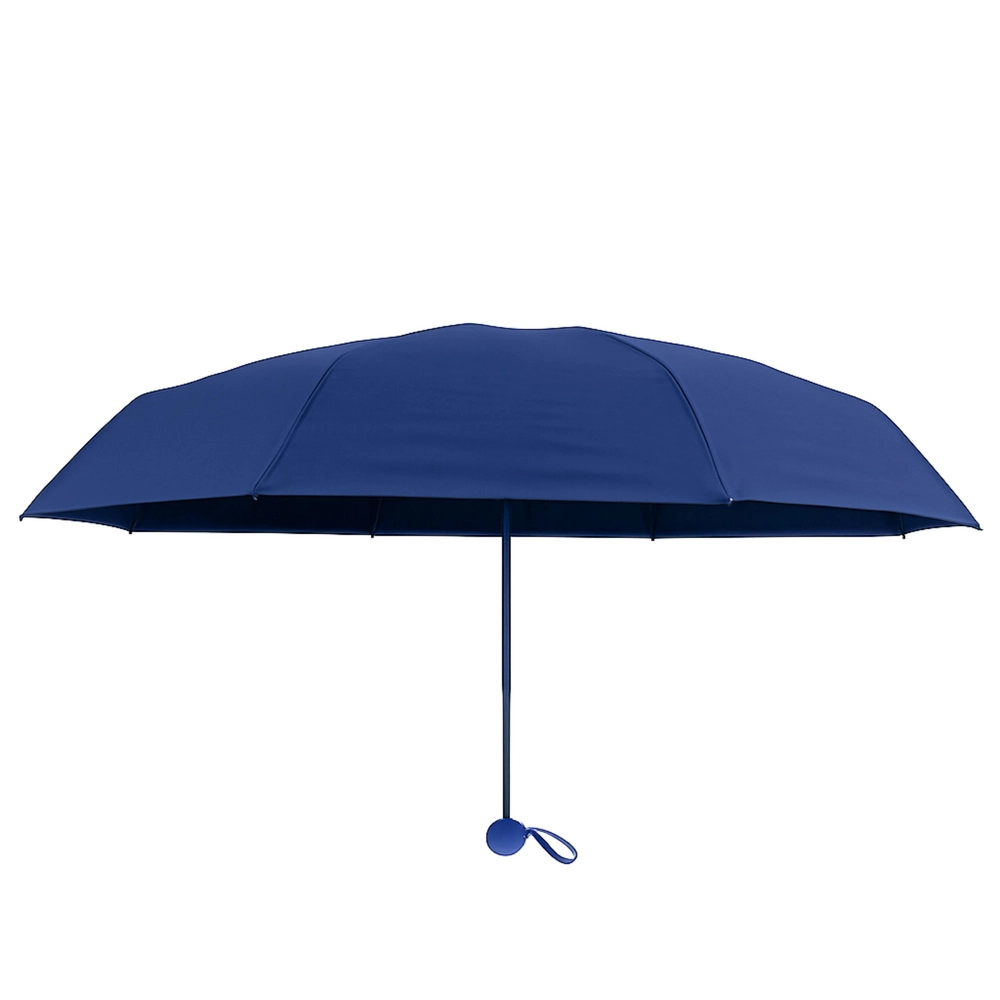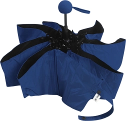 Umbrelă bleumarin compactă, cu diametrul de 90 cm, oferă protecție fiabilă împotriva ploii și a soarelui. Datorită finisajului UV UPF 50+ blochează eficient razele dăunătoare, este ușoară, pliabilă și încape cu ușurință în geantă sau rucsac. Mânerul rotund confortabil și husa practică facilitează purtarea zilnică.