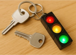 Mini semaforul pentru chei oferă un efect realist de funcționare: după apăsarea butonului se aprind pe rând verde, galben și roșu, însoțite de clipire. Datorită dimensiunilor compacte, se potrivește perfect la inelul de chei, rucsacul școlar sau penar și îi va încânta atât pe copii, cât și pe adulți.