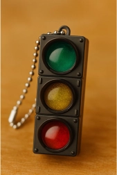 Breloc amuzant în forma unui mini semafor cu trei LED-uri care își schimbă culorile și oferă efect de clipire. Ideal ca instrument educațional pentru copii, gadget original și breloc practic pentru chei, rucsac sau penar. Ușor, rezistent și cu operare simplă printr-un singur buton, alimentat de baterii incluse în pachet.