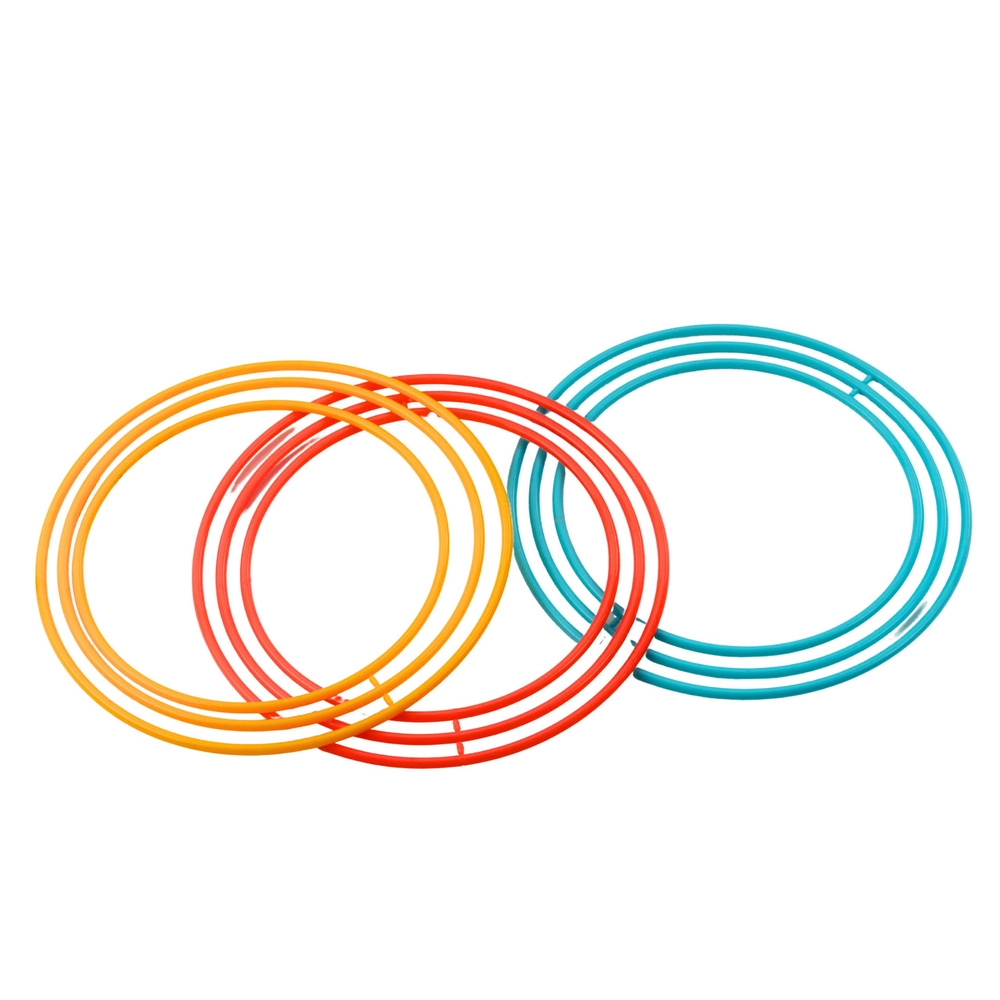 Setul conține 9 inele (3 mari, 3 medii, 3 mici) pentru niveluri de dificultate ajustabile și competiții amuzante.