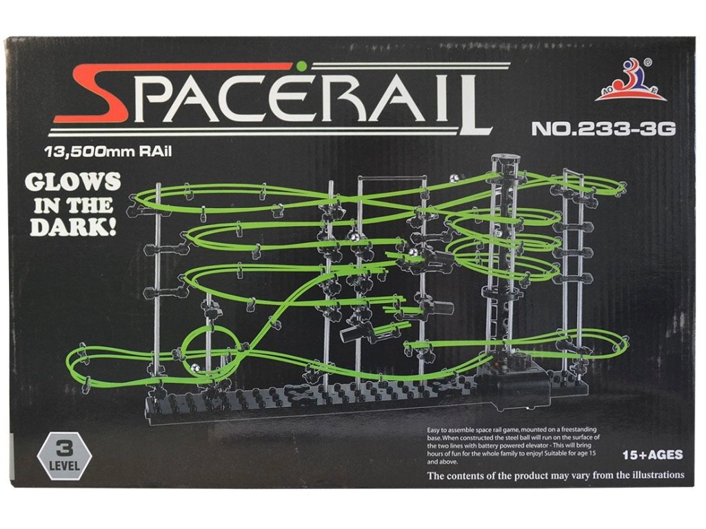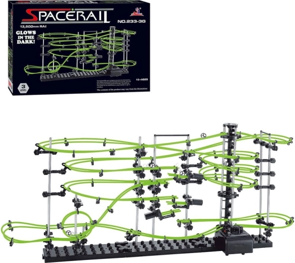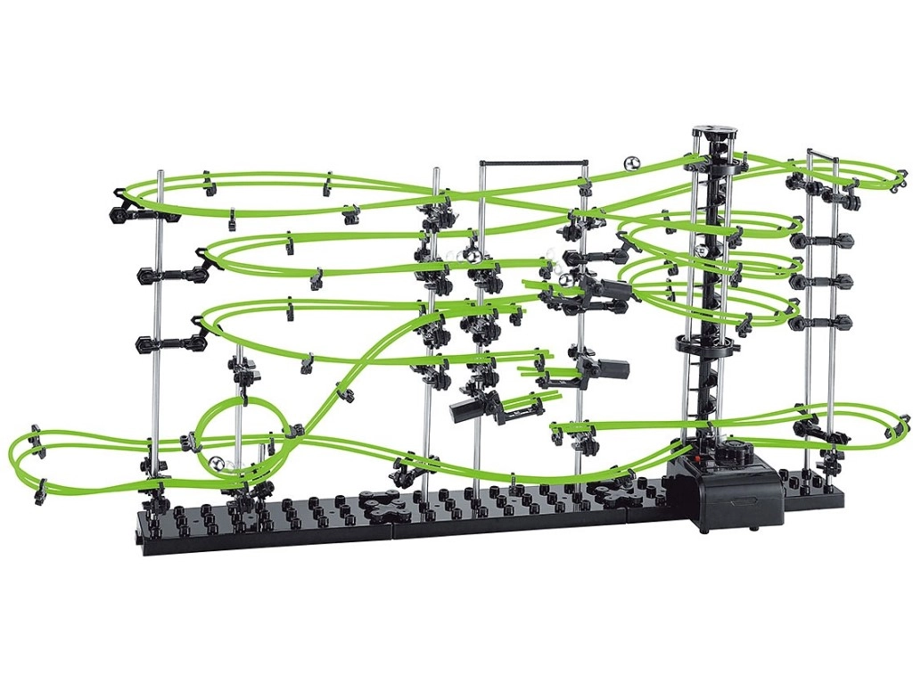 Această pistă luminoasă pentru bile oferă un set bogat de 299 de piese, datorită cărora poți crea cu ușurință trasee unice după instrucțiuni sau după propria imaginație. Cu o combinație de secțiuni cu diferență de nivel, curbe și coborâri abrupte vei testa limitele legilor fizicii și te vei bucura de un spectacol captivant care strălucește în întuneric.