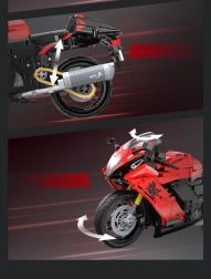 Suspensia față și spate asigură o mișcare lină a modelului și reproduce fidel comportamentul unei motociclete sport reale.