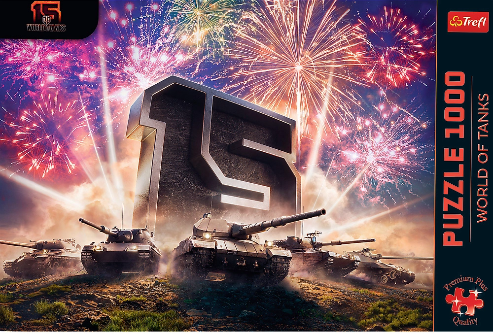 Sărbătorește a 15-a aniversare a legendarului joc WORLD OF TANKS cu puzzle-uri de design de la Trefl. Setul conține 1000 de piese, fabricate din cel mai înalt calitate, carton gros cu tăiere precisă pentru asamblare comodă. Imaginea finală cu dimensiunile 68,3 × 48 cm prezintă o scenă de luptă dinamică cu tancuri și un „15” spectaculos pe fundal de focuri de artificii – un cadou ideal pentru fani și colecționari.