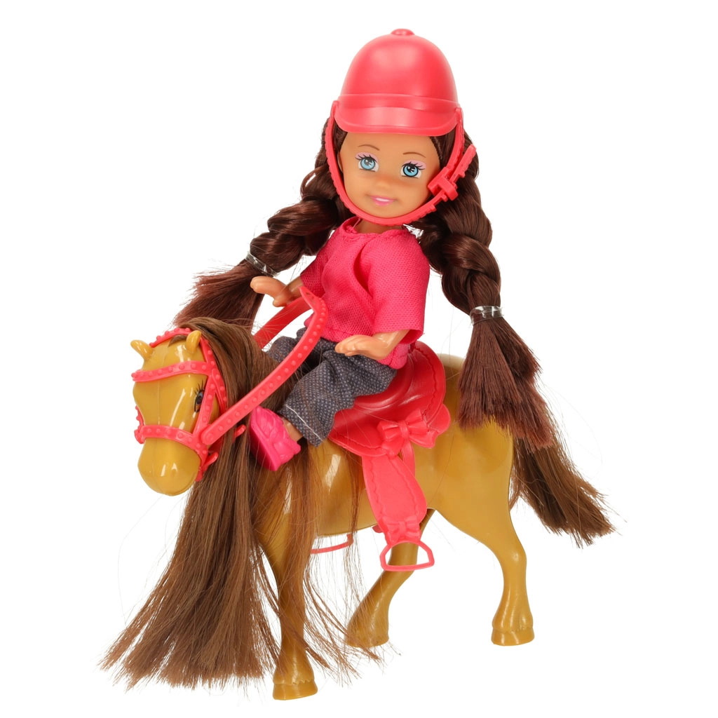 Păpușa și poneiul au păr moale și lung – ideal pentru pieptănat, împletit și coafare creativă.