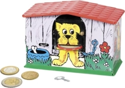 Această pușculiță stilată în formă de căsuță pentru câini este un cadou grozav pentru copii și iubitorii de animale. Corpul metalic cu imprimeu colorat și acoperiș roșu are un aer jucăuș și, în același timp, este suficient de rezistent pentru utilizare zilnică. Fantă pentru monede ușurează depunerea banilor, iar ușița mică cu încuietoare permite scoaterea în siguranță a economiilor.