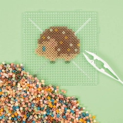 Creați imagini simple sau elaborate după modelele incluse sau din propria imaginație. Mărgelele în nuanțe pastel se așază ușor pe plăcuță, se acoperă cu hârtie de copt și se fixează prin călcare cu un fier obișnuit. După răcire, motivele finalizate se desprind ușor și se expun.