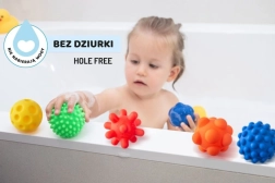 Cauciucul moale și suplu este plăcut în palmă și oferă un masaj delicat. Ideal pentru strâns, rostogolit și primele jocuri pe burtică.