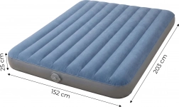 Include o pompă reîncărcabilă încorporată cu baterie litiu pentru umflare și dezumflare comode, fără accesorii suplimentare – ideală atât în călătorii, cât și acasă. Suprafața plăcută din velur este antiderapantă și confortabilă la atingere, iar dimensiunile 203 × 152 × 25 cm oferă spațiu suficient pentru două persoane adulte.