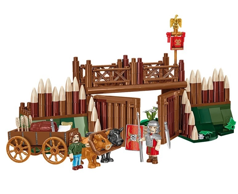 Pășește în inima castrului roman. Poarta robustă cu porți deschise, palizada înaltă și accesoriile detaliate aduc atmosfera autentică a unei tabere antice. Excelent pentru joacă creativă, colecțiile pasionaților de istorie și decor de efect.