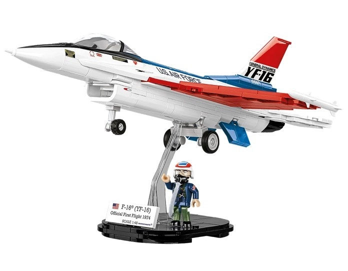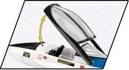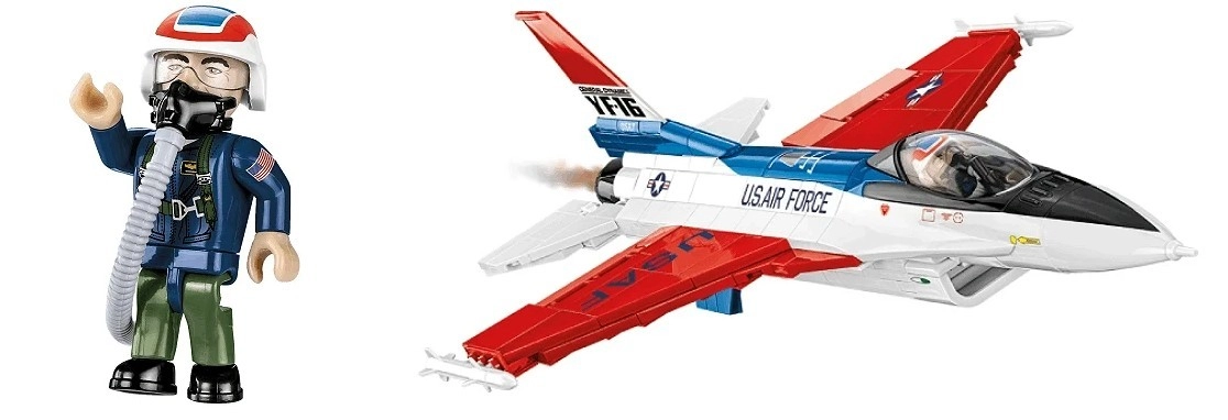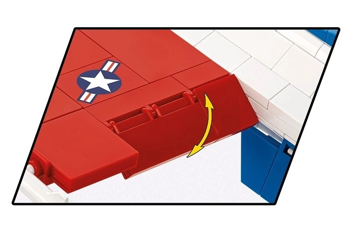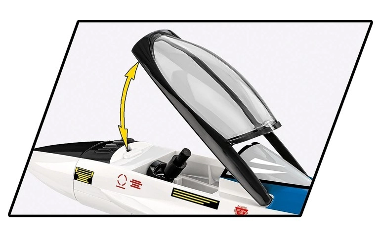 Sunt incluse figurina pilotului în costum de test cu cască și furtun pentru masca de oxigen, capotă de cabină rabatabilă, elemente mobile ale eleroanelor și roților și un suport robust cu denumire și scară. Toate piesele au inscripții permanente fără autocolante și sunt compatibile cu alte mărci de seturi de construcție.