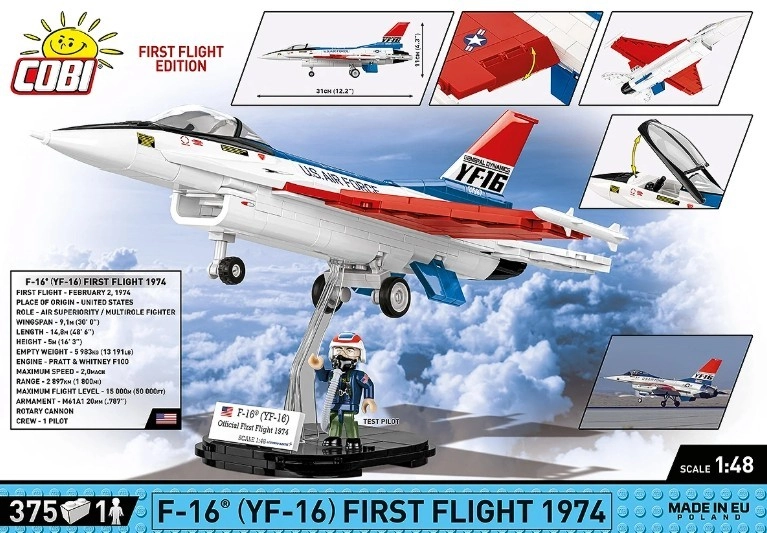 Această machetă detaliată aduce un omagiu primului zbor de test al YF‑16 din 1974. Datorită inscripțiilor precise, schemei autentice și proporțiilor la scara 1:48, obții un model realist care iese în evidență pe raft sau în vitrină. Instrucțiunile intuitive asigură o construcție plăcută chiar și pentru constructorii mai puțin experimentați.