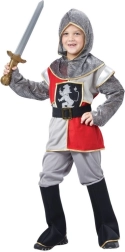 Transformă-ți copilul într-un erou curajos al Evului Mediu cu acest costum complet. Costumul este destinat înălțimii de 110–120 cm și este ideal pentru carnaval, serbări școlare și petreceri pentru copii. Conține tot ce este necesar pentru o transformare rapidă – bluză, cagulă, pantaloni cu acoperitori și curea. Datorită croielii confortabile, copiii îl poartă cu plăcere și le permite libertate de mișcare la joacă și dans.