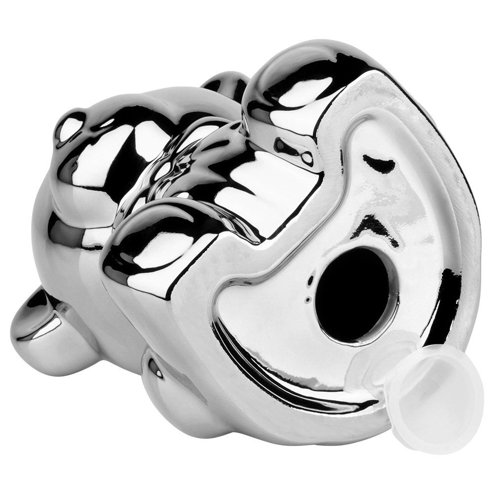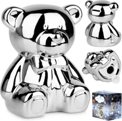 Această pușculiță ceramică argintie în formă de urs îmbină designul glamour modern cu utilitatea practică. Strălucirea tip oglindă adaugă interiorului o notă de lux și, în același timp, te motivează să economisești regulat monede și bancnote.