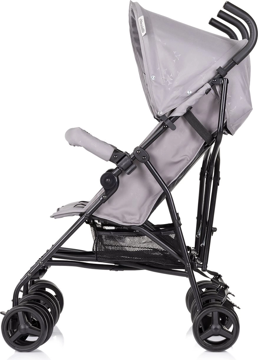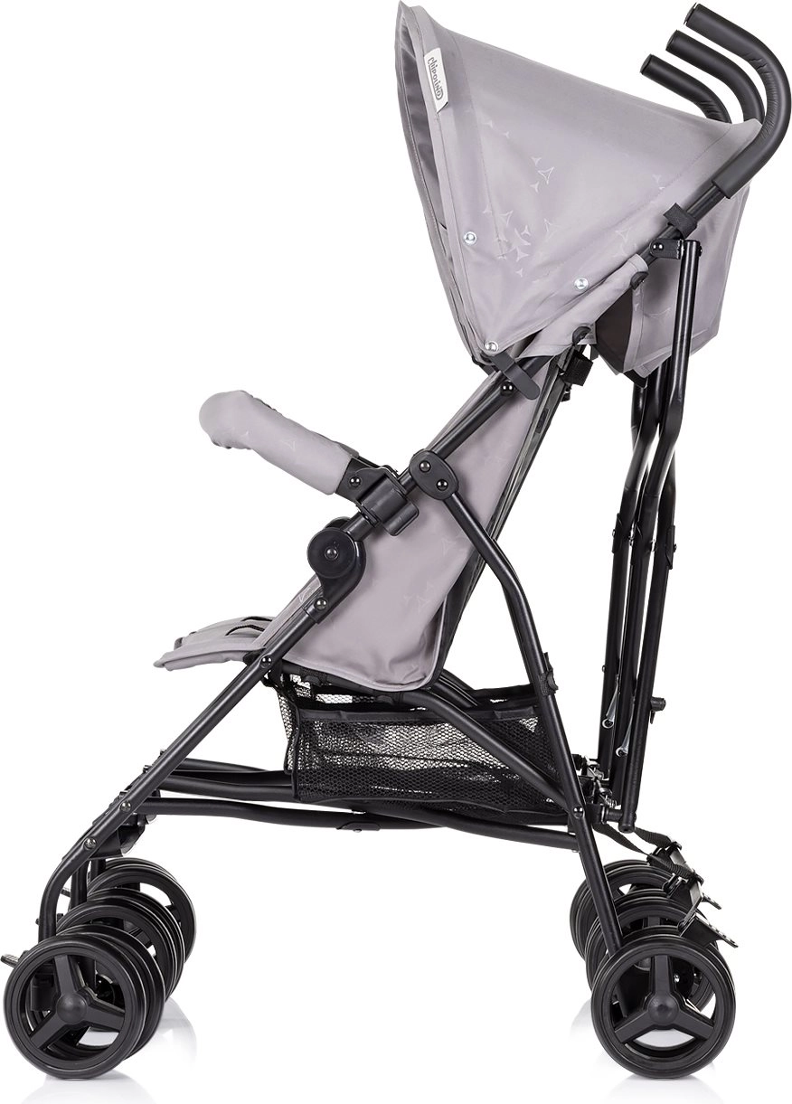 Plierea tip umbrelă facilitează transportul și depozitarea în portbagaj. Roțile din spate cu frână interconectată cresc siguranța la oprire, iar mânerele confortabile cu înveliș de calitate asigură o priză sigură. Fiecare scaun are 2 poziții ale spătarului pentru relaxare sau observarea împrejurimilor. Căruciorul este produs în conformitate cu EN 1888-1 + A1:2022.