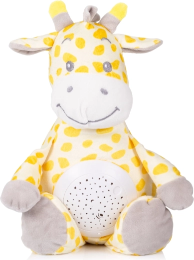 Căutați o modalitate de a face mai plăcută adormirea de seară a copiilor? Această girafă de pluș combină efecte luminoase liniștitoare cu melodii delicate pentru a crea un mediu sigur și relaxant în camera copilului. Proiectorul rotativ afișează un cer înstelat colorat care captivează și calmează.