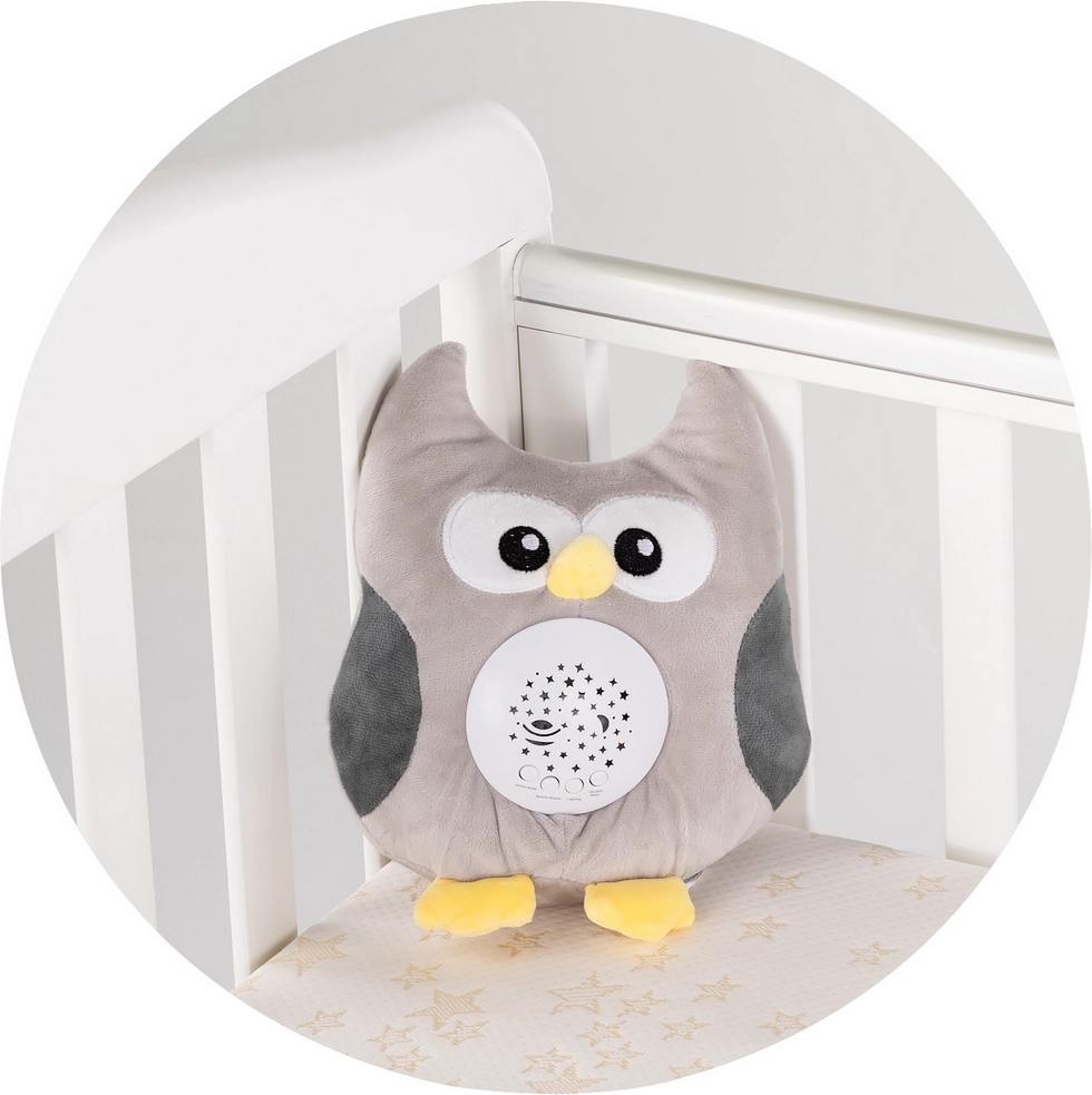 Transformă rutina de seară într-un ritual liniștit. Această bufniță plușată moale de la Chipolino îmbină proiectorul cerului nopții, liniștitorul cântec de leagăn și sunetul alb într-o singură jucărie. Oferă proiecție LED color, 10 melodii, 5 tipuri de sunet alb, 3 niveluri de volum și modul detașabil pentru curățare ușoară.