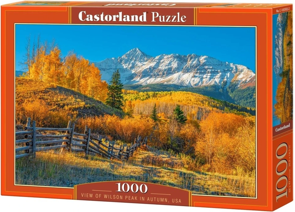 Bucură-te de relaxare cu un puzzle de calitate de la Castorland. Acest frumos panoramic cu motivul Priveliște de toamnă către Wilson Peak oferă 1000 de piese pentru asamblare plăcută și o imagine finală de aproximativ 68 × 47 cm.