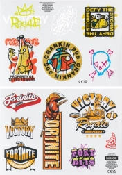 Set stilat de autocolante cu motive FORTNITE pentru personalizarea echipamentului de gaming. Conține 4 foi de autocolante tehnice de calitate, care îți decorează cu ușurință consolele, controllerele, laptopurile și alte dispozitive.