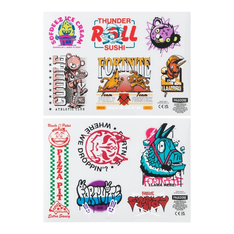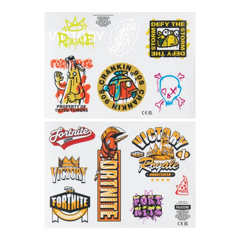 Oferă colțului tău de gaming un aspect unic. Acest set de autocolante tehnice cu motive iconice FORTNITE aduce o modalitate rapidă și distractivă de a-ți personaliza dispozitivele și accesoriile. Autocolantele se aplică ușor și sunt ideale pentru console, controllere, computere, laptopuri și alte suprafețe netede.