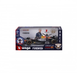 Culori, logo-uri și aerodinamică autentice ale RB19, inclusiv halo, aripi și difuzor, pentru un aspect cât mai realist pe raft.