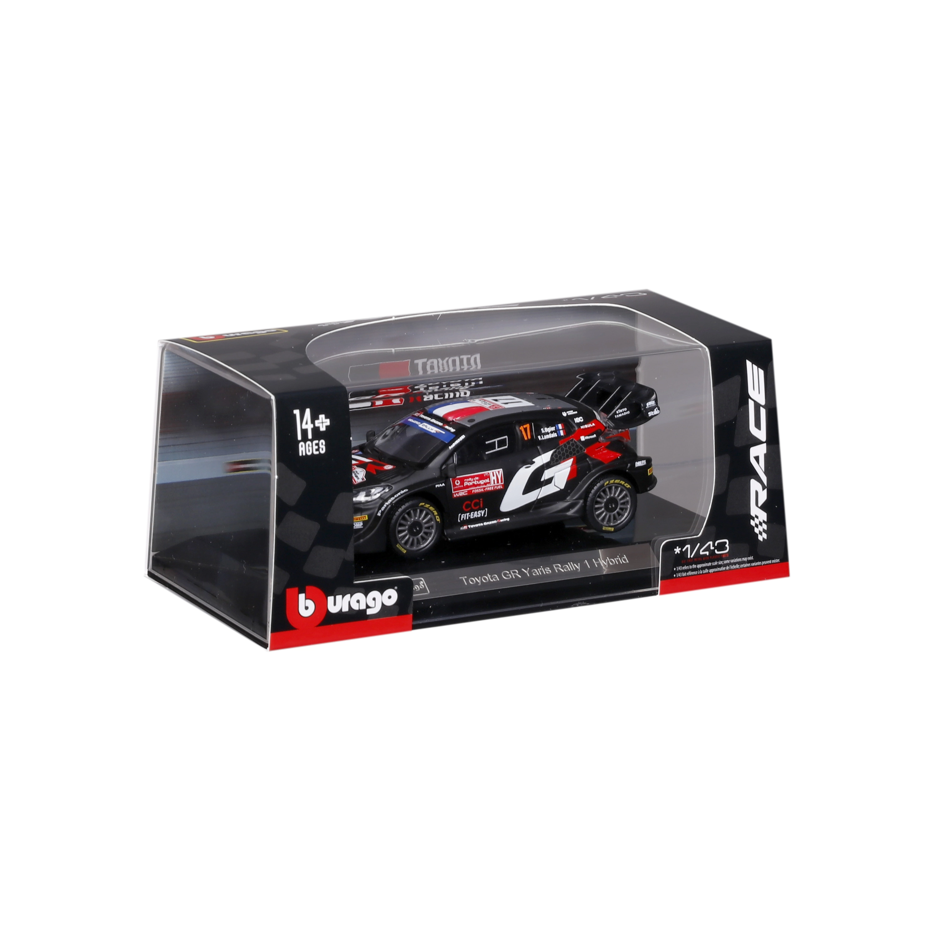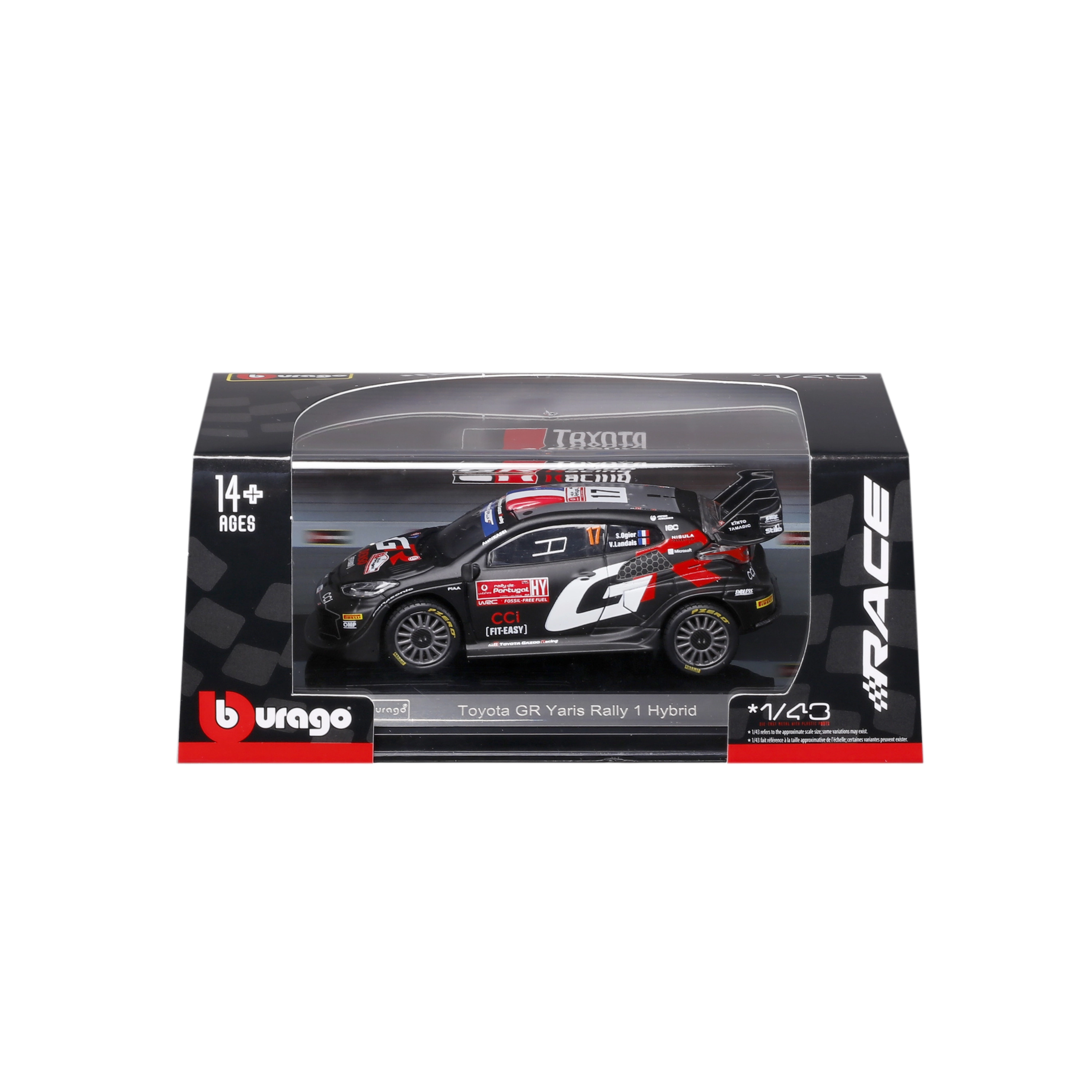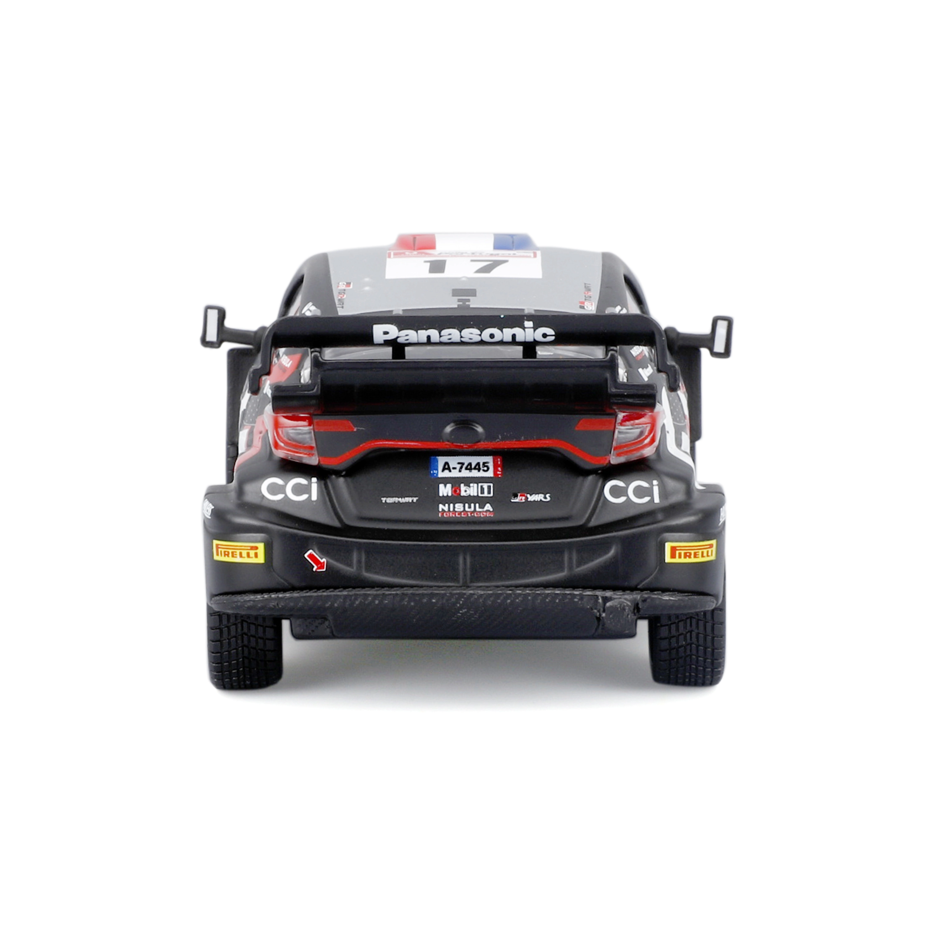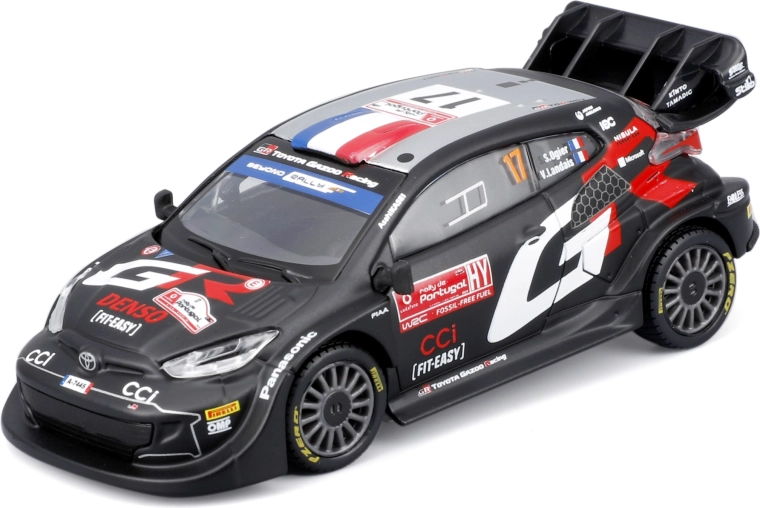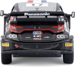 Acest model metalic realizat cu precizie reprezintă mașina de competiție TOYOTA GR Yaris Rally1 Hybrid #17 în designul piloților TOYOTA GAZOO Racing. Se remarcă prin linii tăioase, imprimeu fidel al sponsorilor și detalii funcționale, precum roți realiste și o aripă spate mare.