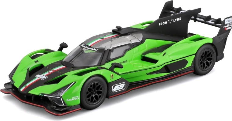 Aripa proeminentă, difuzorul și liniile ascuțite ale caroseriei subliniază ADN-ul modelului LAMBORGHINI SC63 și oferă un aspect realist la scara 1:43.