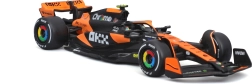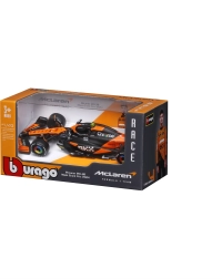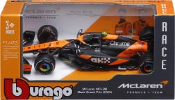 Acest model metalic F1, licențiat oficial, de la Bburago redă aspectul autentic al monopostului McLaren MCL38 în ediția Senna. Se remarcă prin forma precisă a caroseriei, vopseaua portocaliu‑negru contrastantă și detaliile atent realizate, precum aripile, halo și logourile partenerilor.