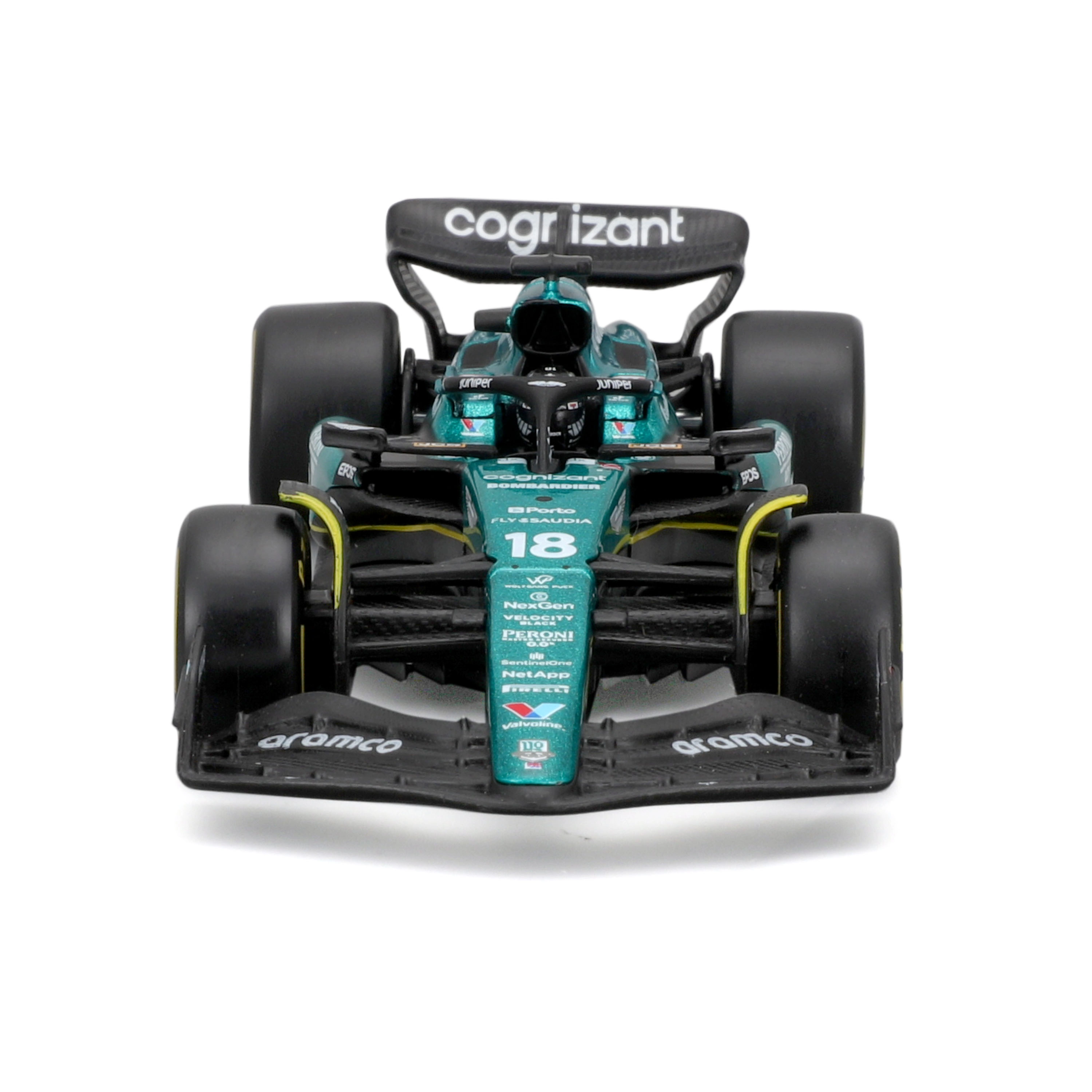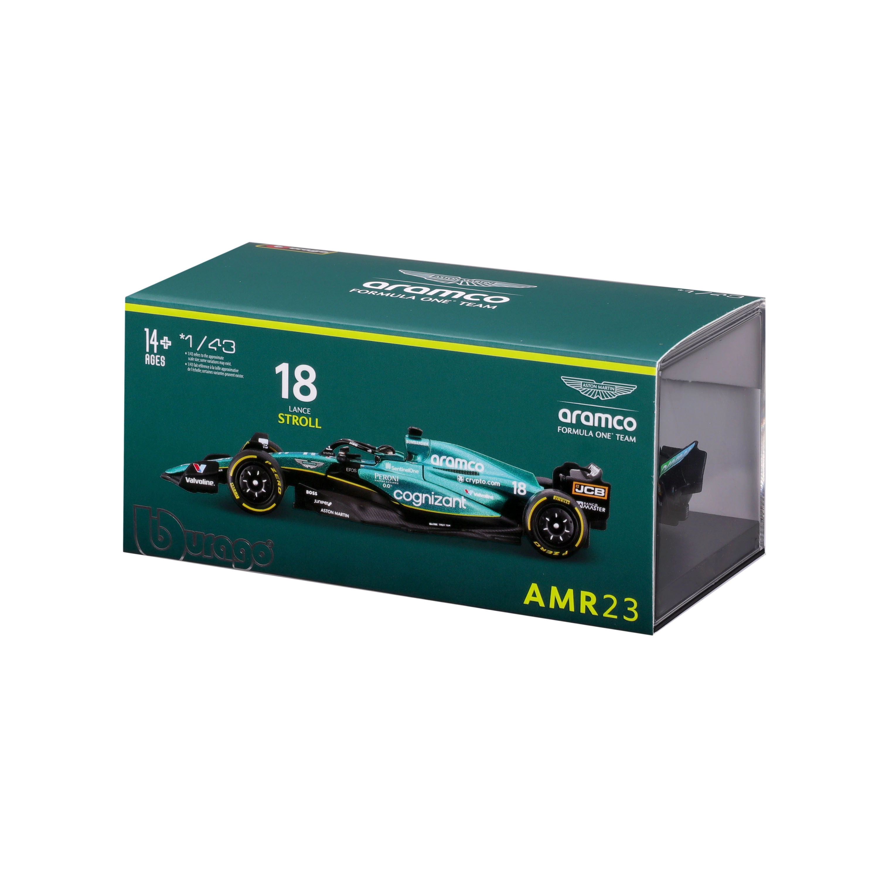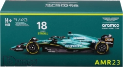 Acest model realizat cu precizie Aston Martin AMR23 la scara 1:43 redă fidel formele monopostului din sezonul 2023 cu numărul 18, pilotat de Lance Stroll. Se remarcă prin vopseaua autentică în verde de curse, logo-urile detaliate ale sponsorilor și execuția exactă a aripilor, difuzorului și a protecției halo.