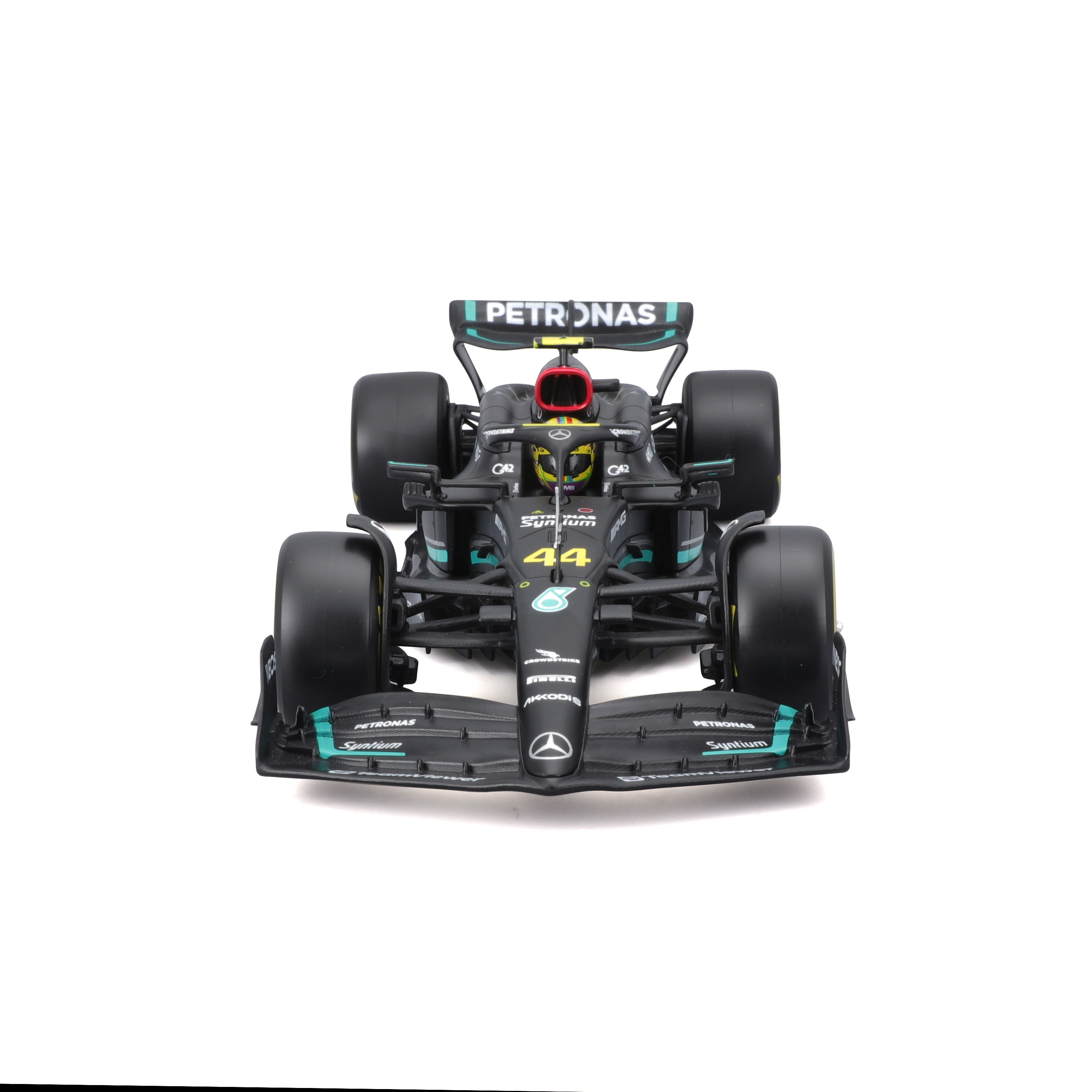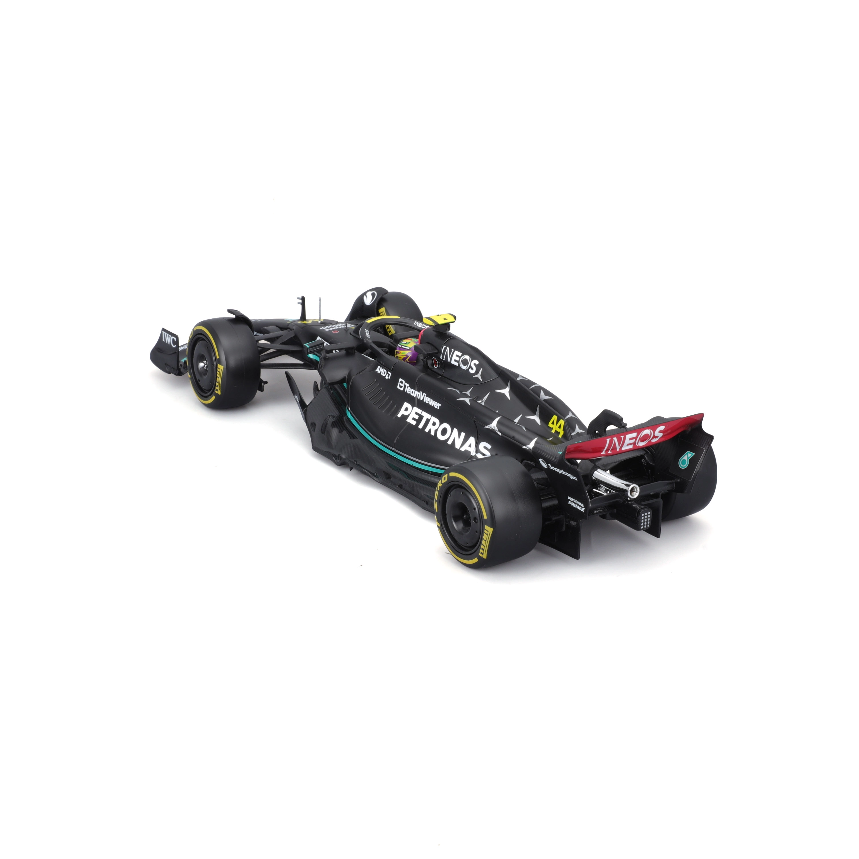 Acest MODEL-KIT detaliat de la Bburago aduce o replică fidelă a monopostului Mercedes-AMG Petronas Formula One Team W14 E (2023). După asamblare, veți obține o piesă de colecție impresionantă, cu elemente aerodinamice elaborate, anvelope slick și inscripții realiste cu numărul 44. Ideal pentru expunere, cadouri pentru fani și pentru începătorii în machetism.