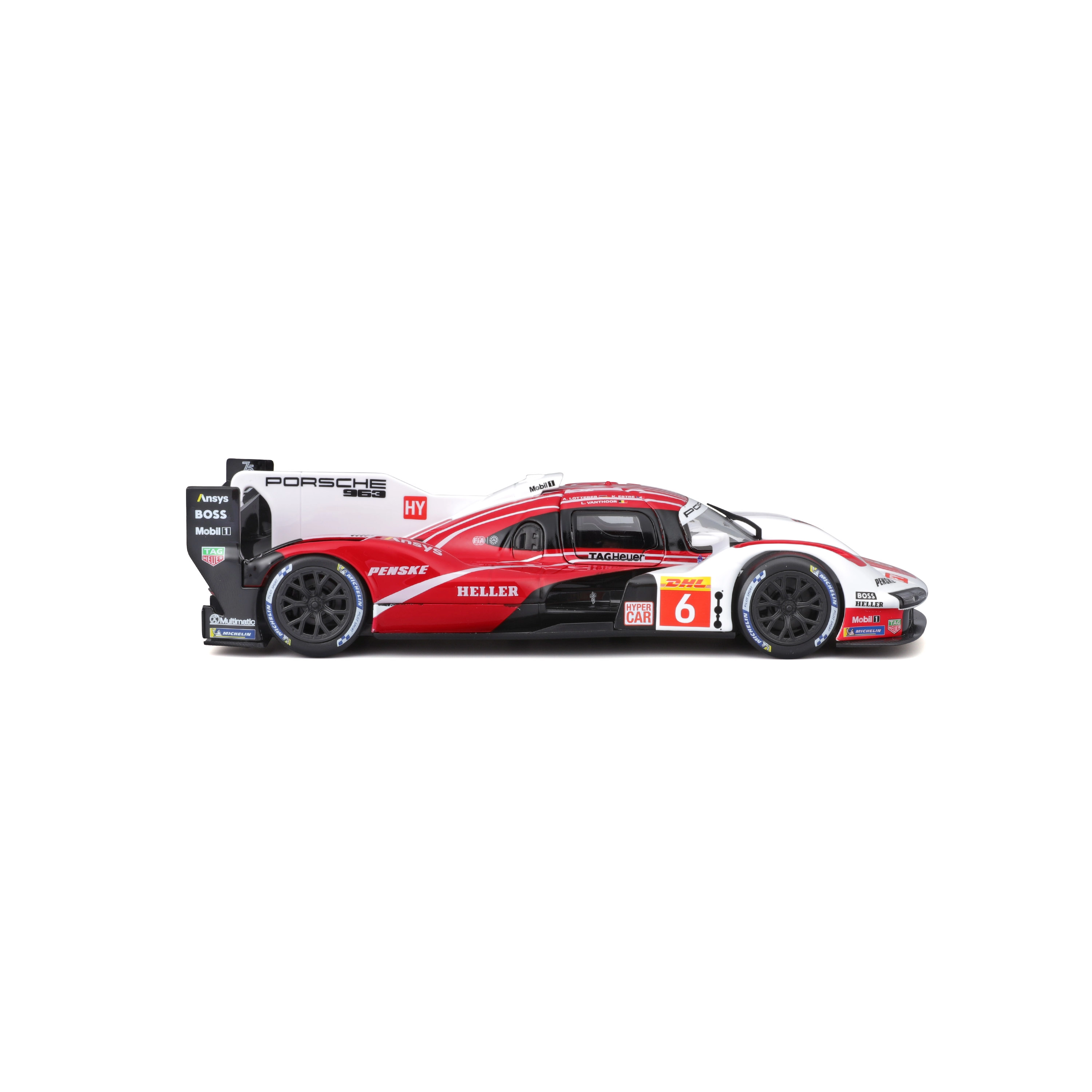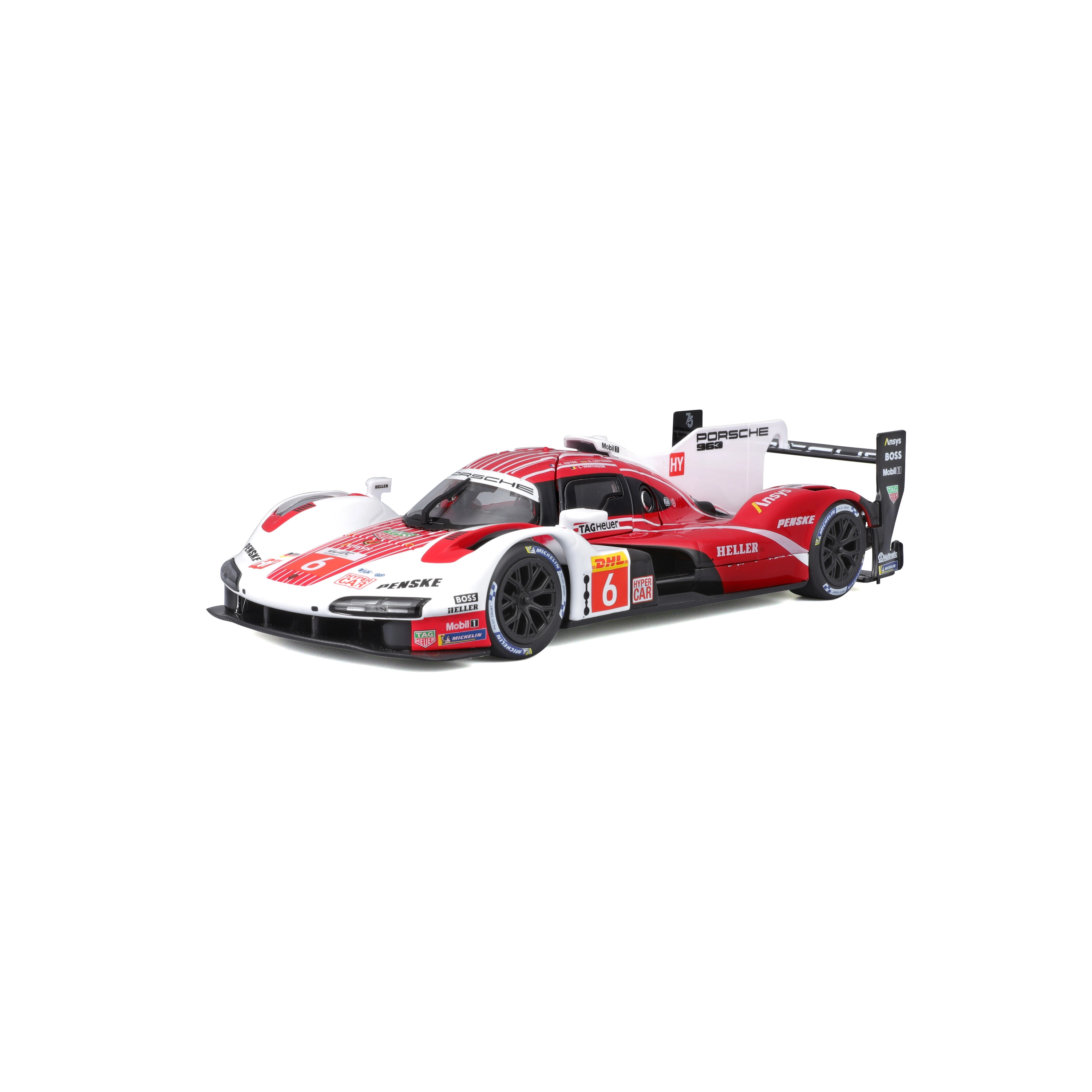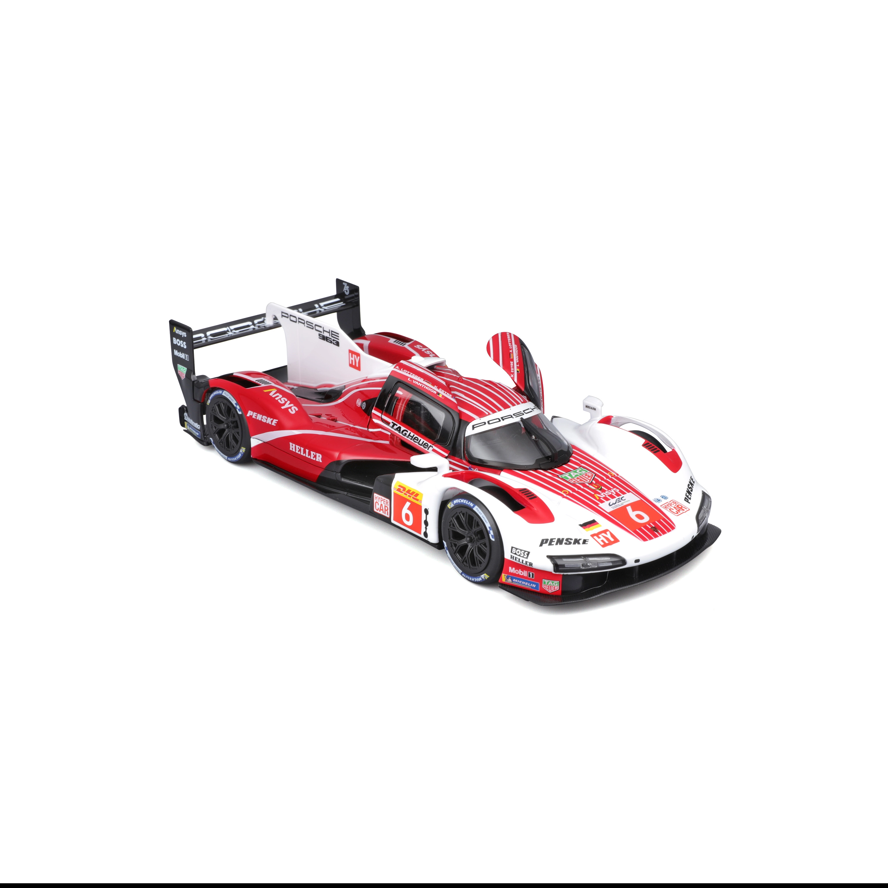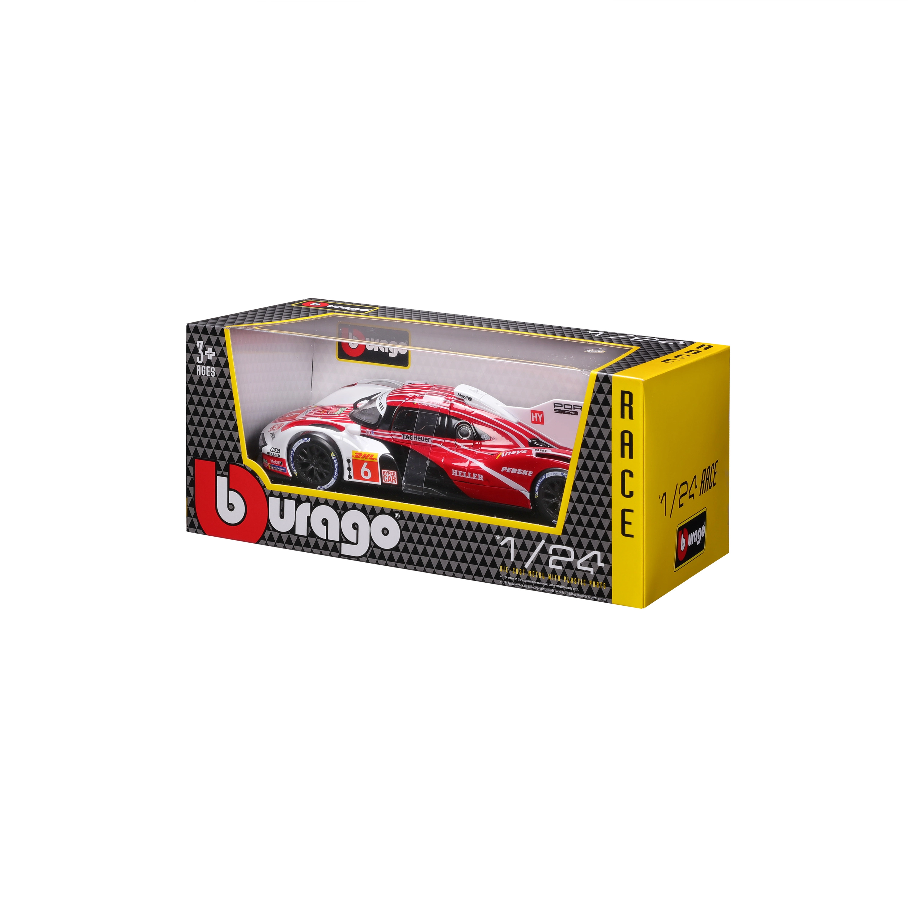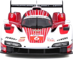 Modelul Bburago 1:24 redă fidel caracterul prototipului de anduranță PORSCHE 963 (2024) în schema de culori roșu-alb de competiție cu logo-uri de sponsori. Caroseria metalică cu elemente din plastic, liniile precise și detaliile aerodinamice autentice subliniază valoarea de colecție și aspectul la expunere.