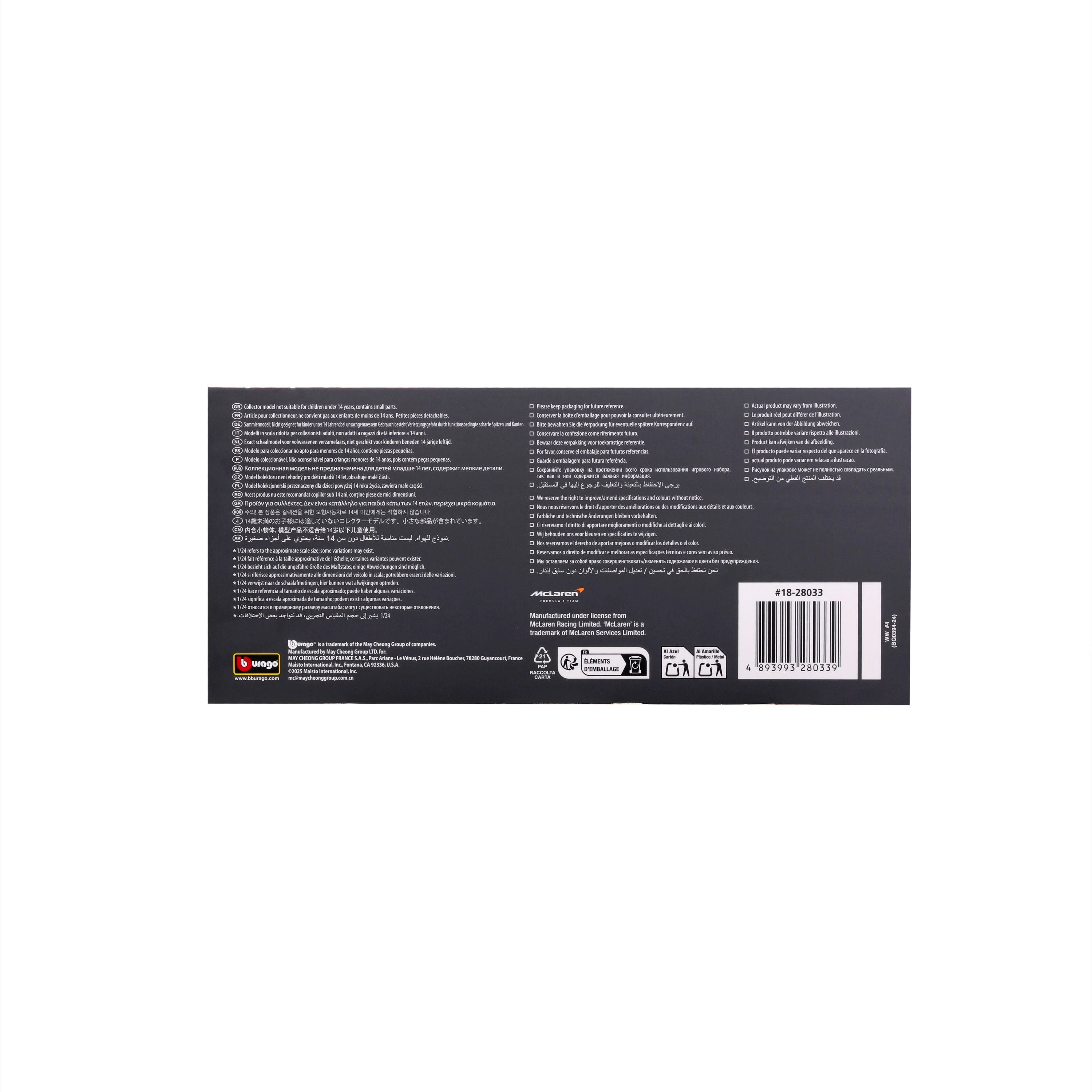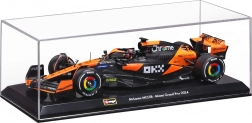 Vitrina robustă din acrilat, cu inscripția „McLaren MCL38 – Miami Grand Prix 2024”, asigură expunere în siguranță și protecție împotriva prafului. Datorită roților rotative și lacului aplicat cu precizie, modelul pare extrem de realist și este ideal pentru pasionații de motorsport sau ca cadou.