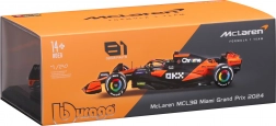 Bucurați-vă de execuția de top a modelului McLaren MCL38 în combinația portocaliu‑negru, care reproduce fidel mașina de la Miami Grand Prix 2024. Caroseria realistă, aripile și detaliile cockpitului cu figura pilotului fac din acest model un accesoriu perfect pentru orice colecție F1.