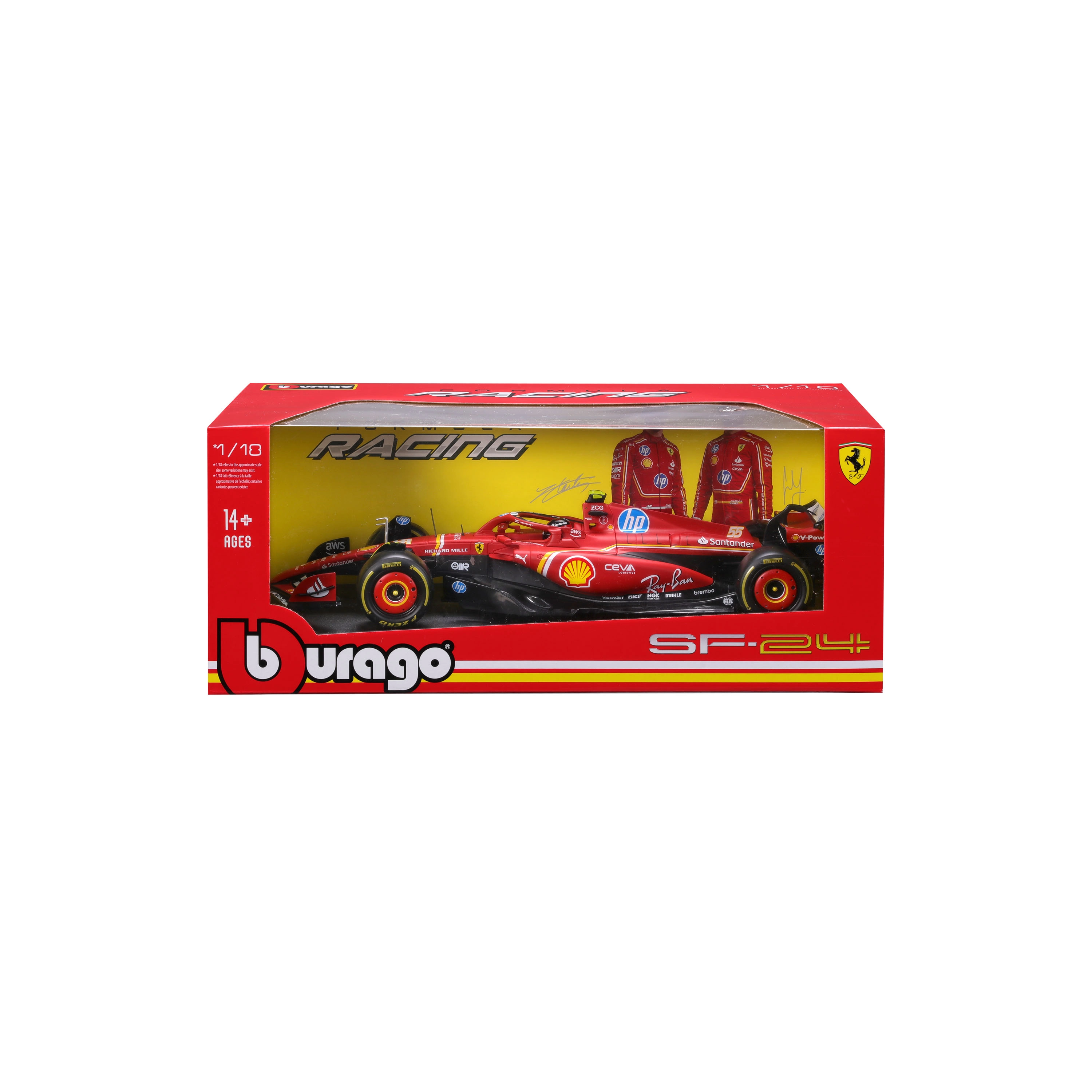 Descoperă replica detaliată a monopostului Ferrari SF-24 sezon 2024 în roșul iconic. Modelul Bburago oferă proporții fidele, linii clare și imprimare de calitate a sponsorilor. În pachet găsești și pilotul Carlos Sainz (#55), ceea ce sporește autenticitatea oricărei expuneri.
