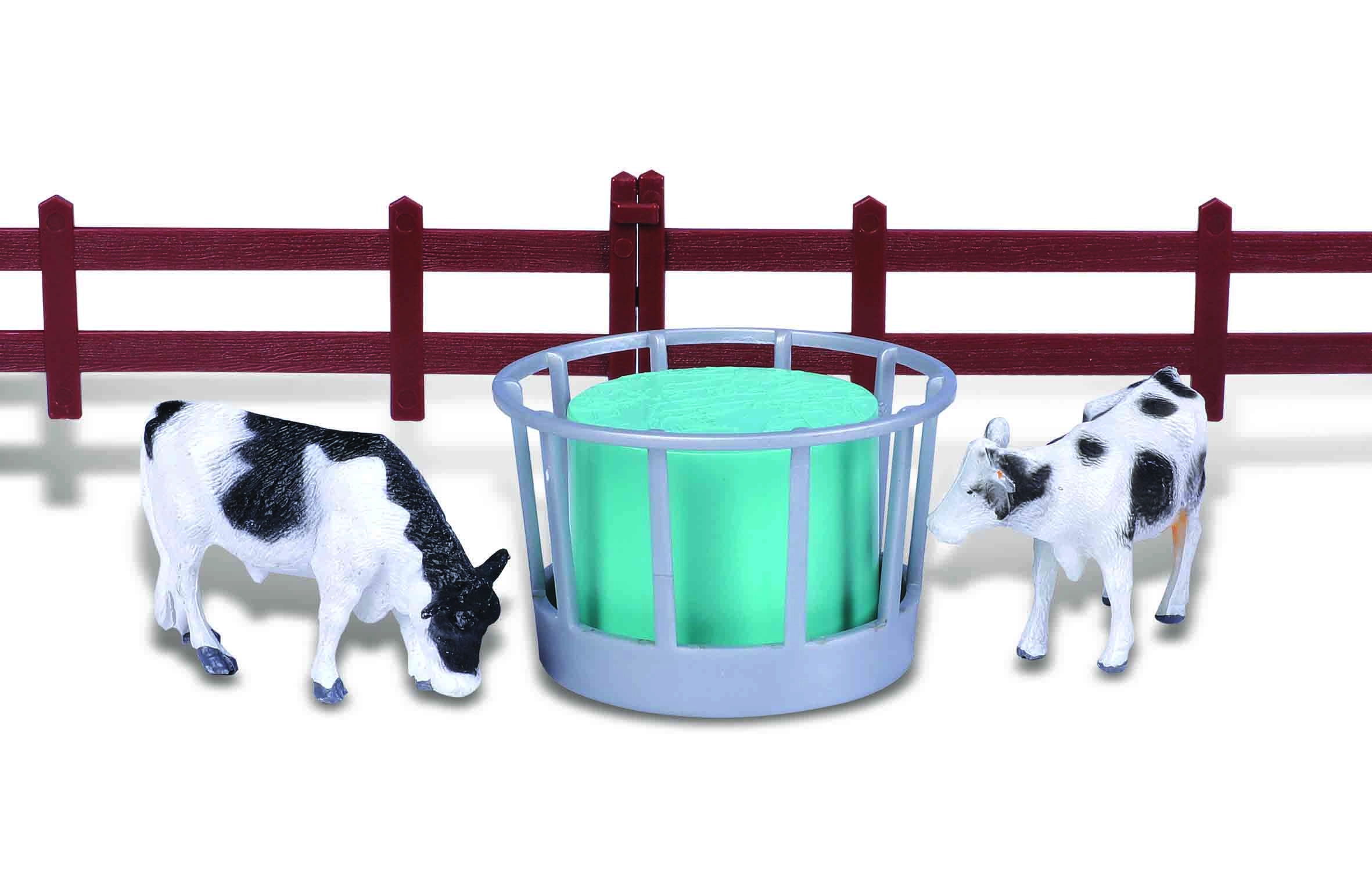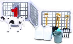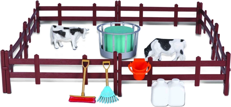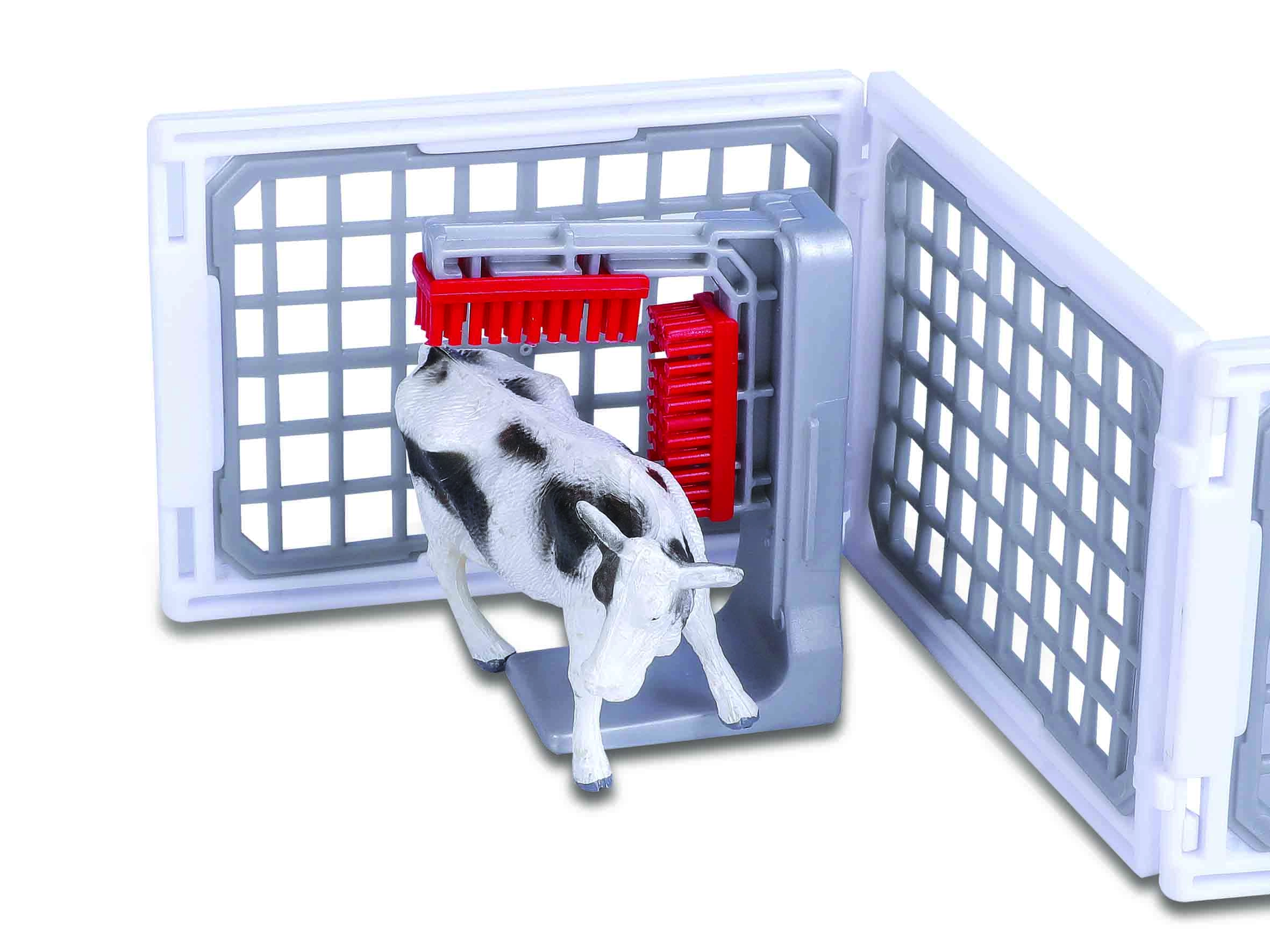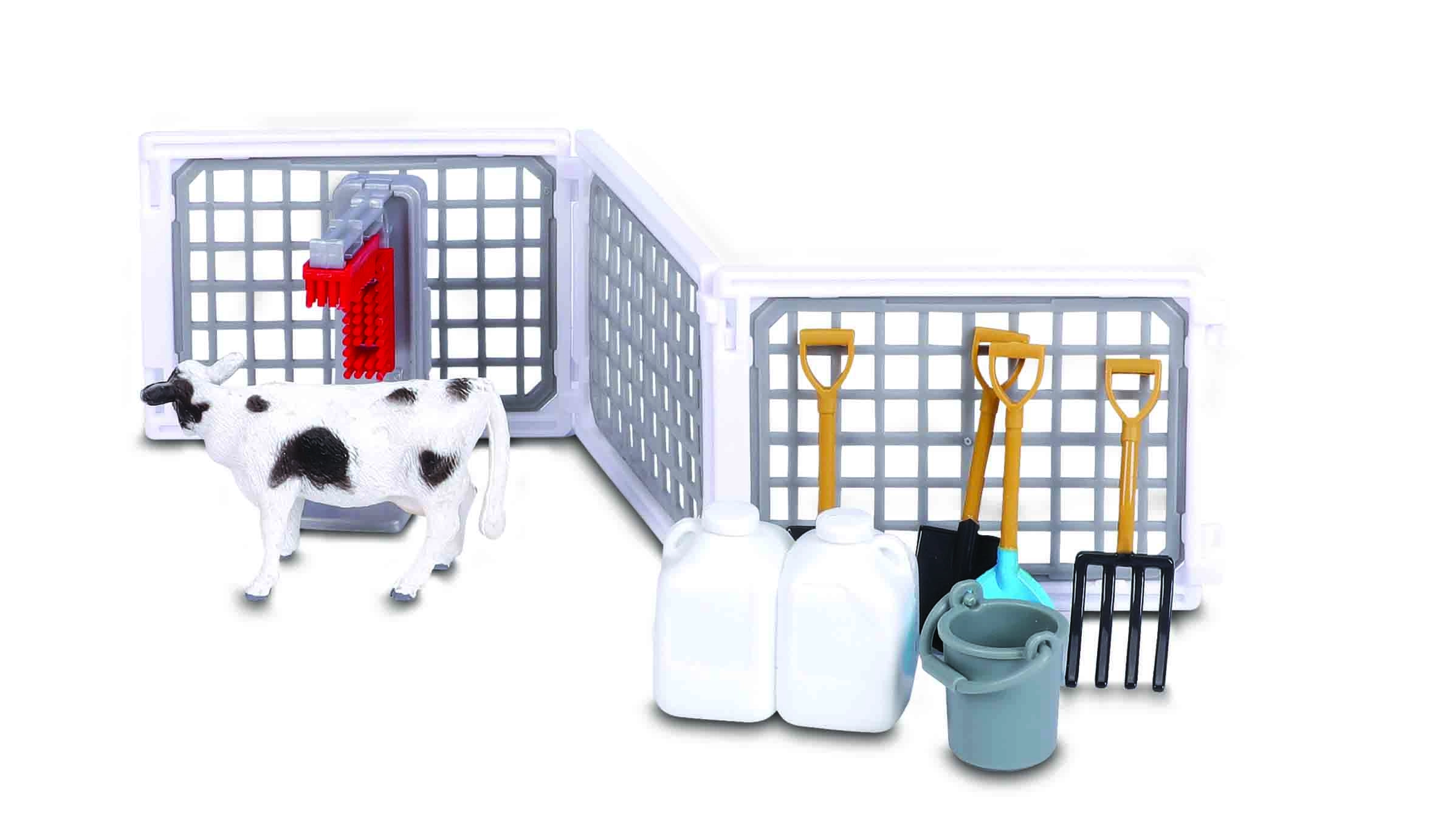 Este inclus și un căruț mobil cu aparat de muls și o figurină fermier, adăugând un plus de realism rutinei zilnice de pe fermă. Copiii își dezvoltă motricitatea fină, imaginația și responsabilitatea prin îngrijirea animalelor domestice. Construcția din plastic de calitate și piesele rezistente asigură durabilitate și joacă în siguranță.