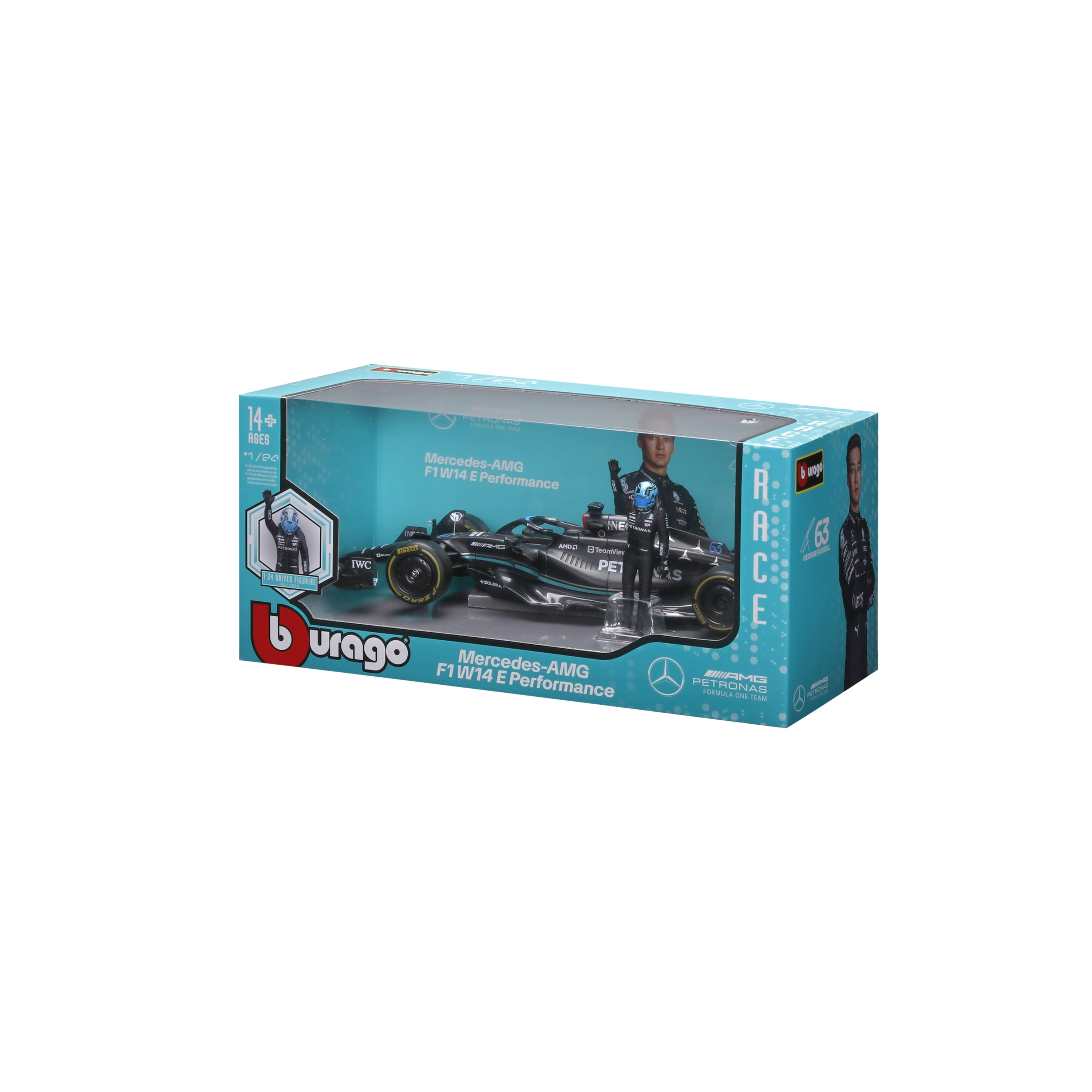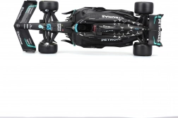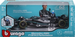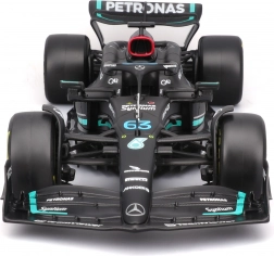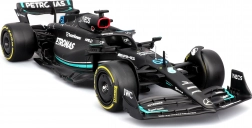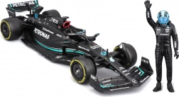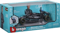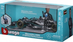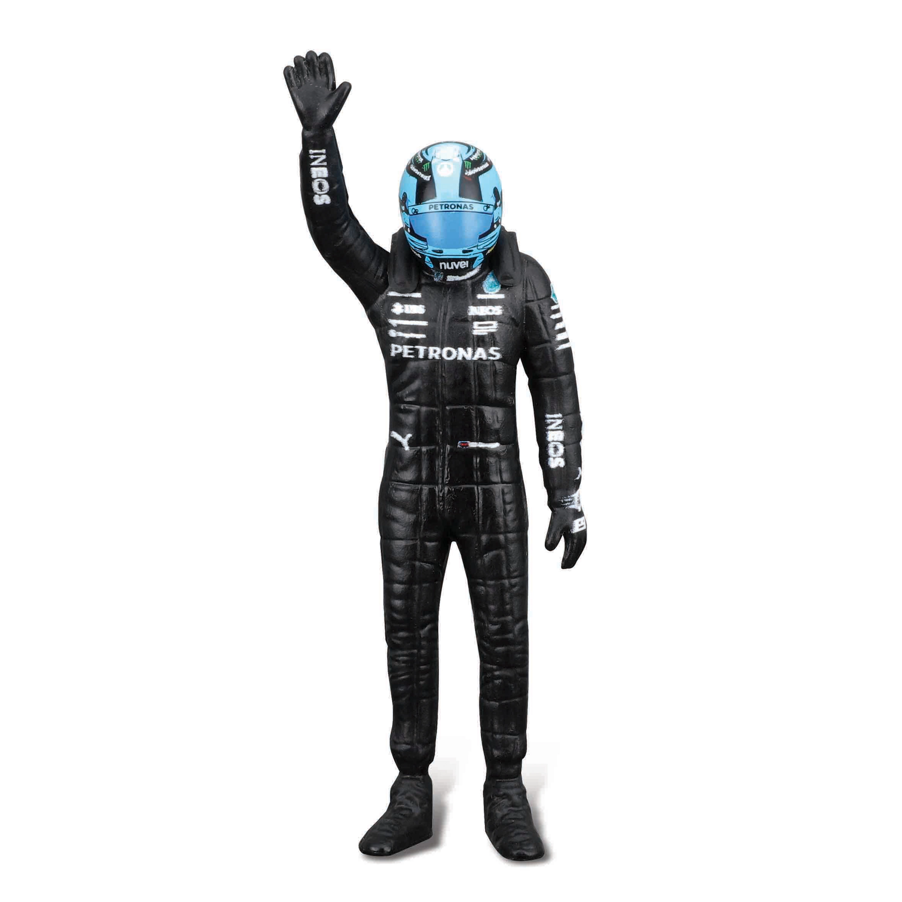 Pachetul include figurină decorativă a pilotului George Russell și inscripționări de calitate ale livery‑ului cu sponsori, care subliniază fidelitatea față de original. Modelul este ideal pentru display, vitrină și ca cadou pentru fanii F1.