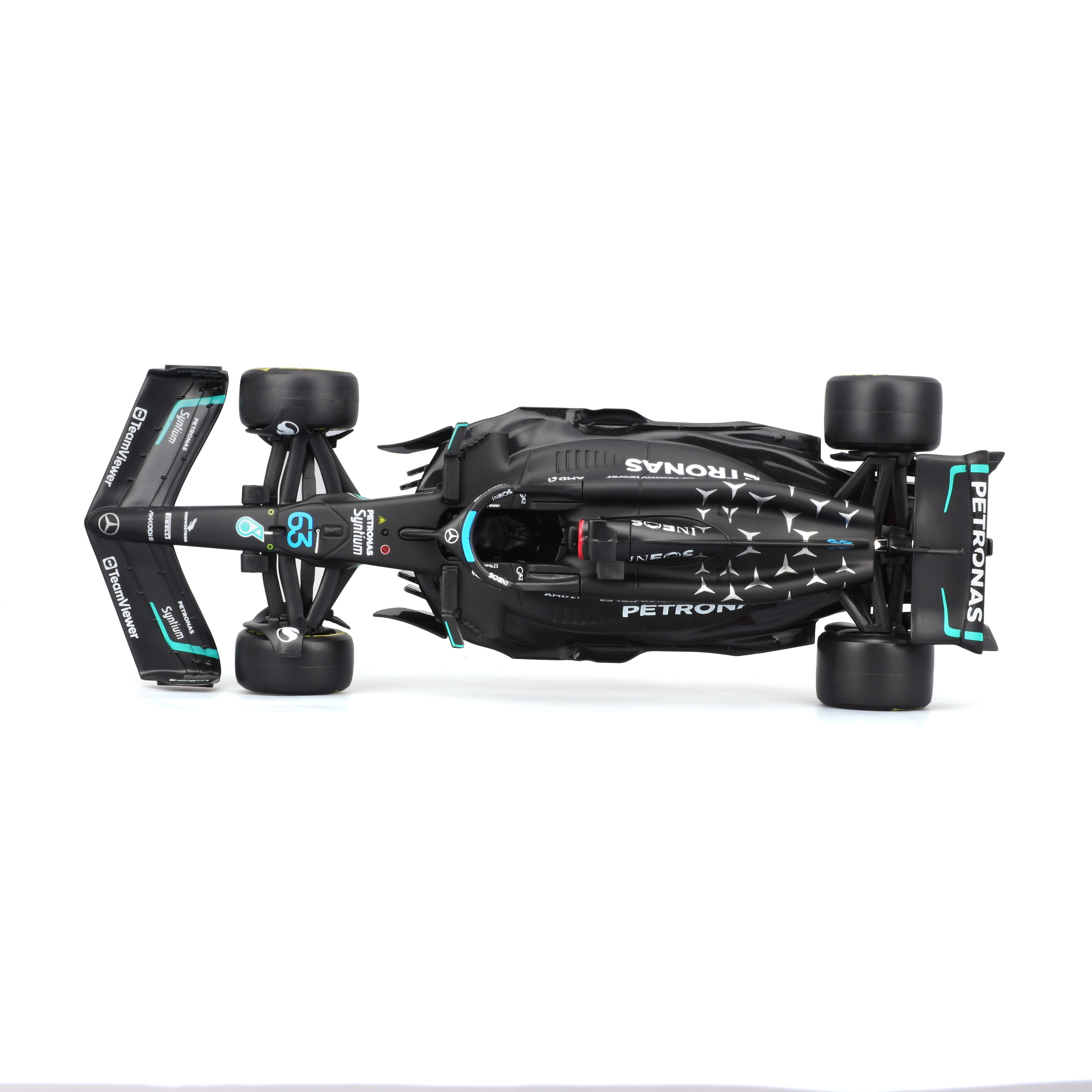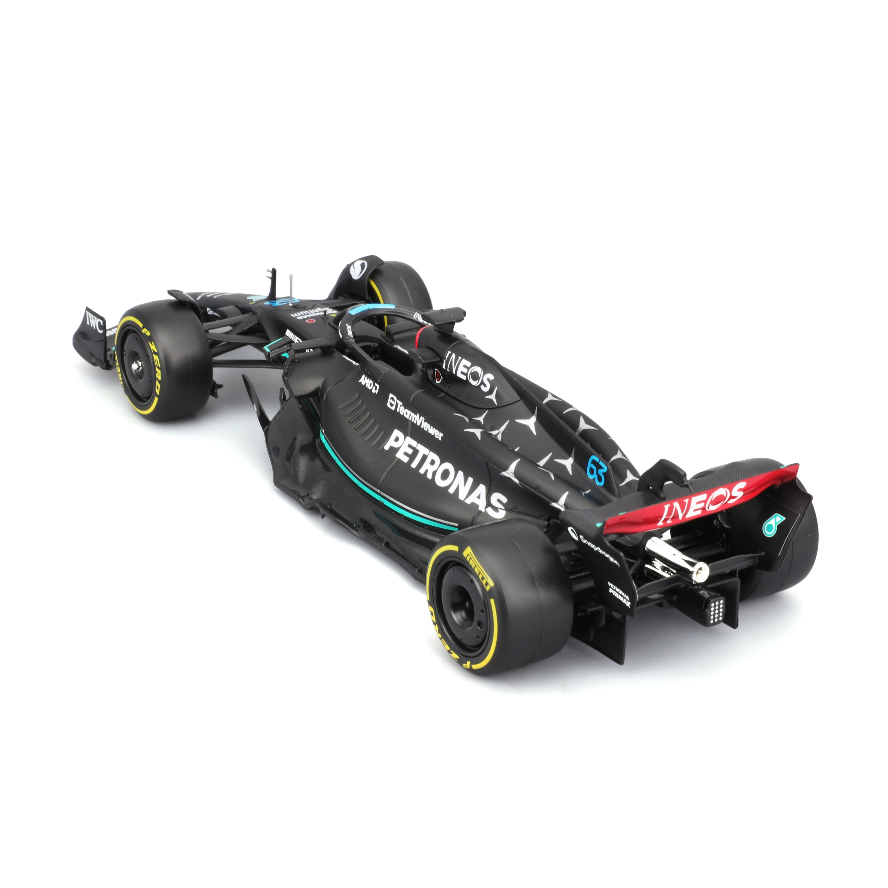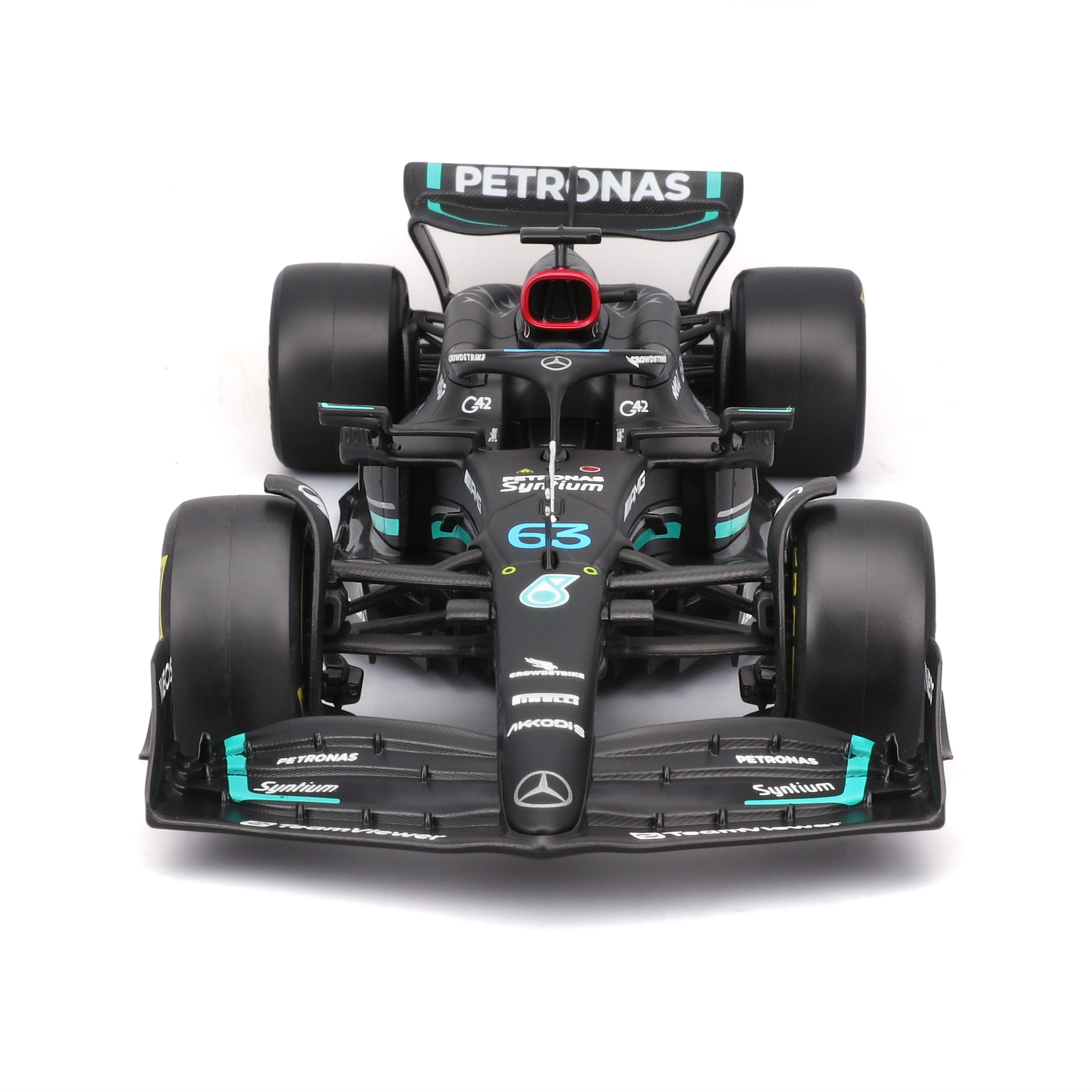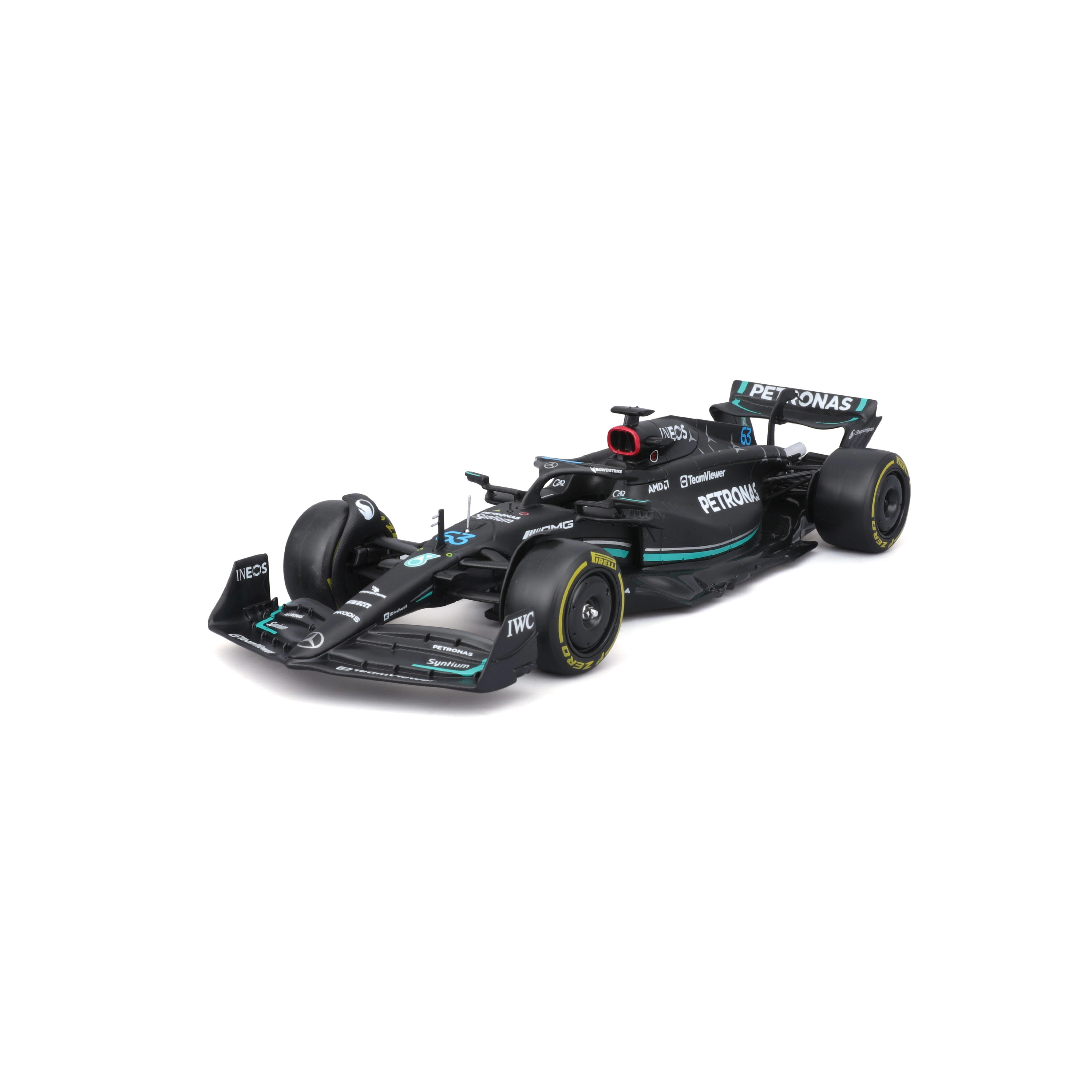 Îmbogățește‑ți colecția cu monopostul emblematic al sezonului 2023 – MERCEDES‑AMG F1 W14 E în culorile echipei PETRONAS. Această replică licențiată de la Bburago, la scara 1:24, se remarcă prin proporții precise, vopsea autentică, slick‑uri realiste și detalii fine ale caroseriei, inclusiv halo și aripi.