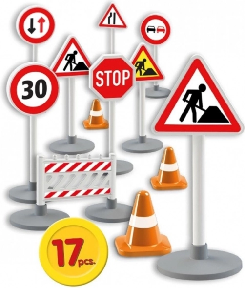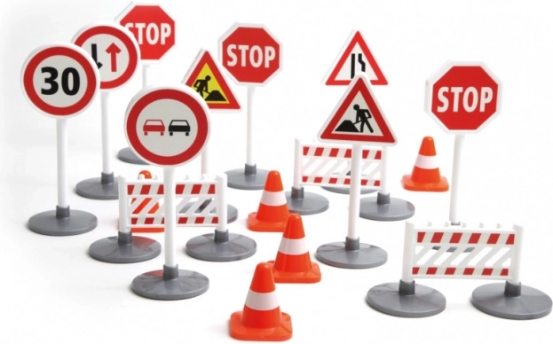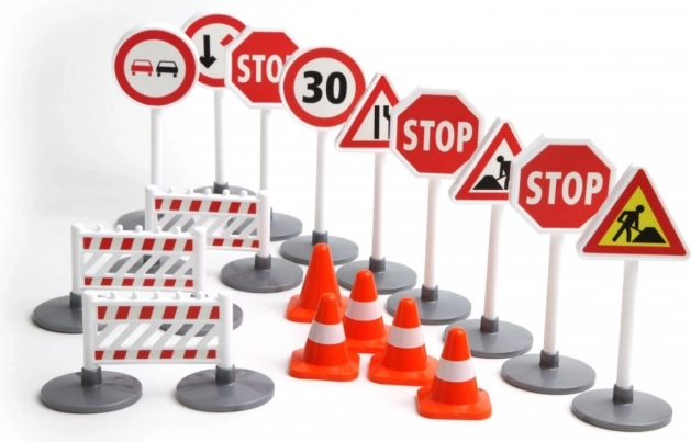 Fiecare semn are o înălțime de aproximativ 16 cm și este realizat din plastic de calitate, durabil, care rezistă jocului zilnic acasă sau la grădiniță. Setul este potrivit pentru completarea pistelor pentru mașinuțe, a covorașelor de joacă și a proiectelor tematice de construcție.